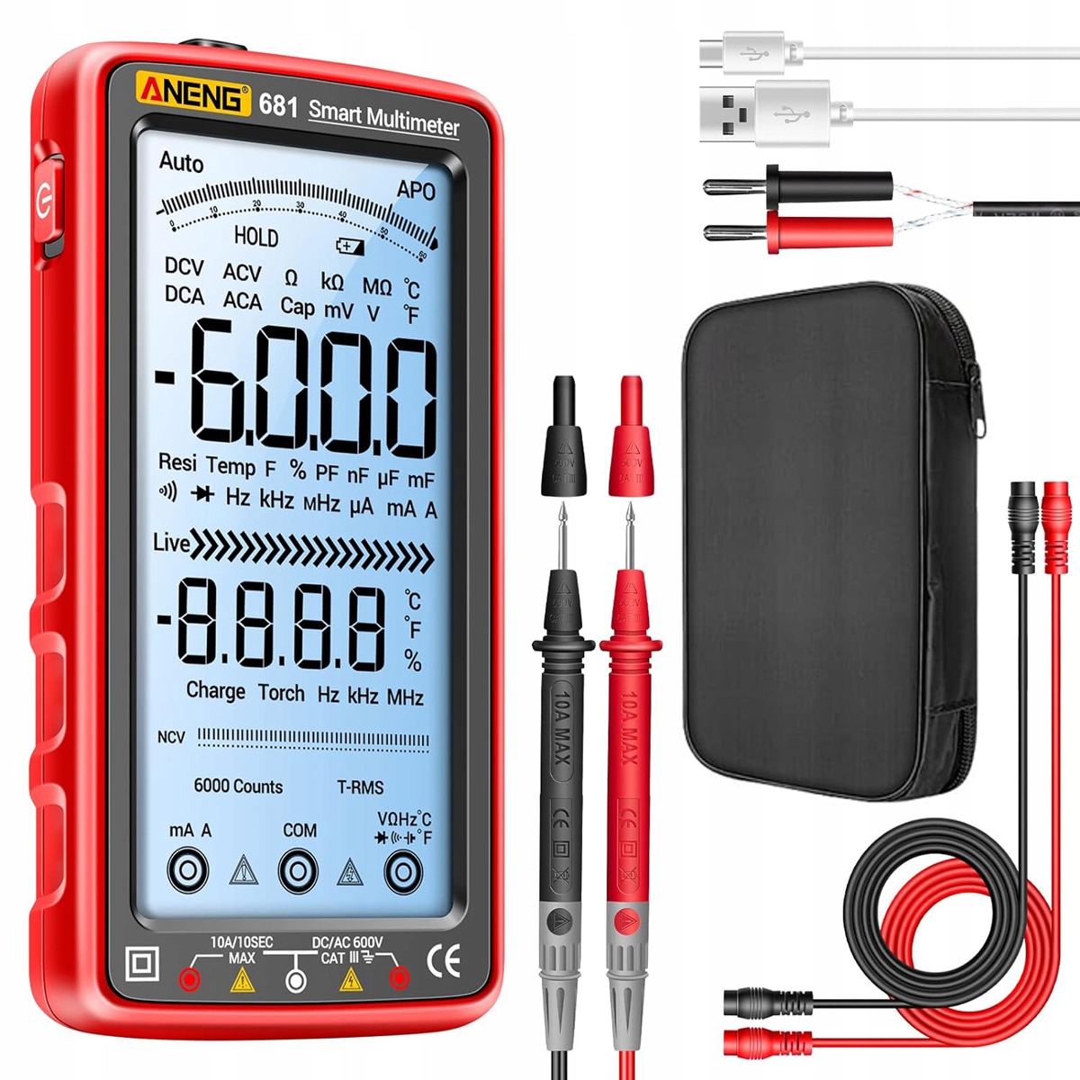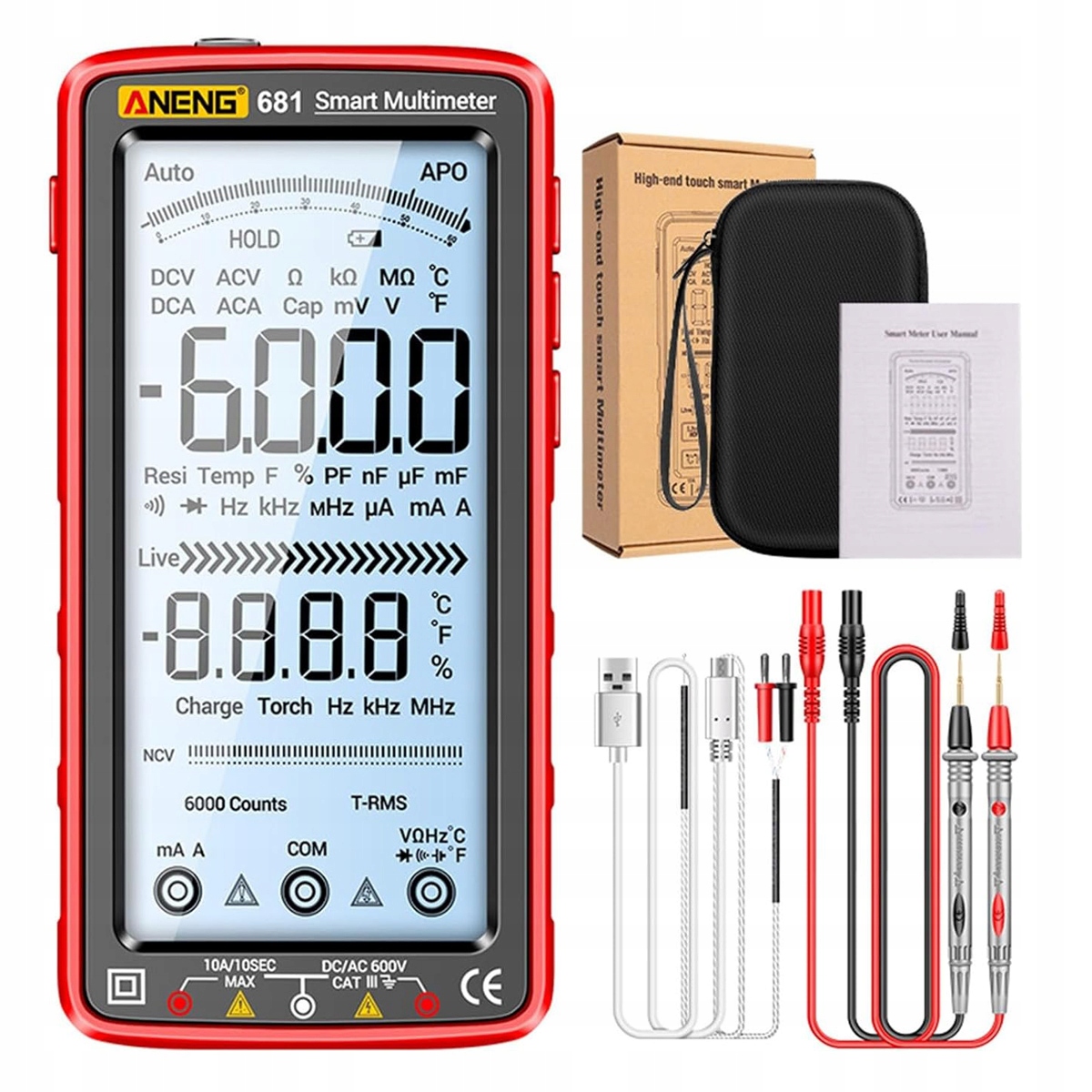 Автоматический мультиметровый Angeng 681 ЖКД AC / DC + Case 6000Z TYP-C