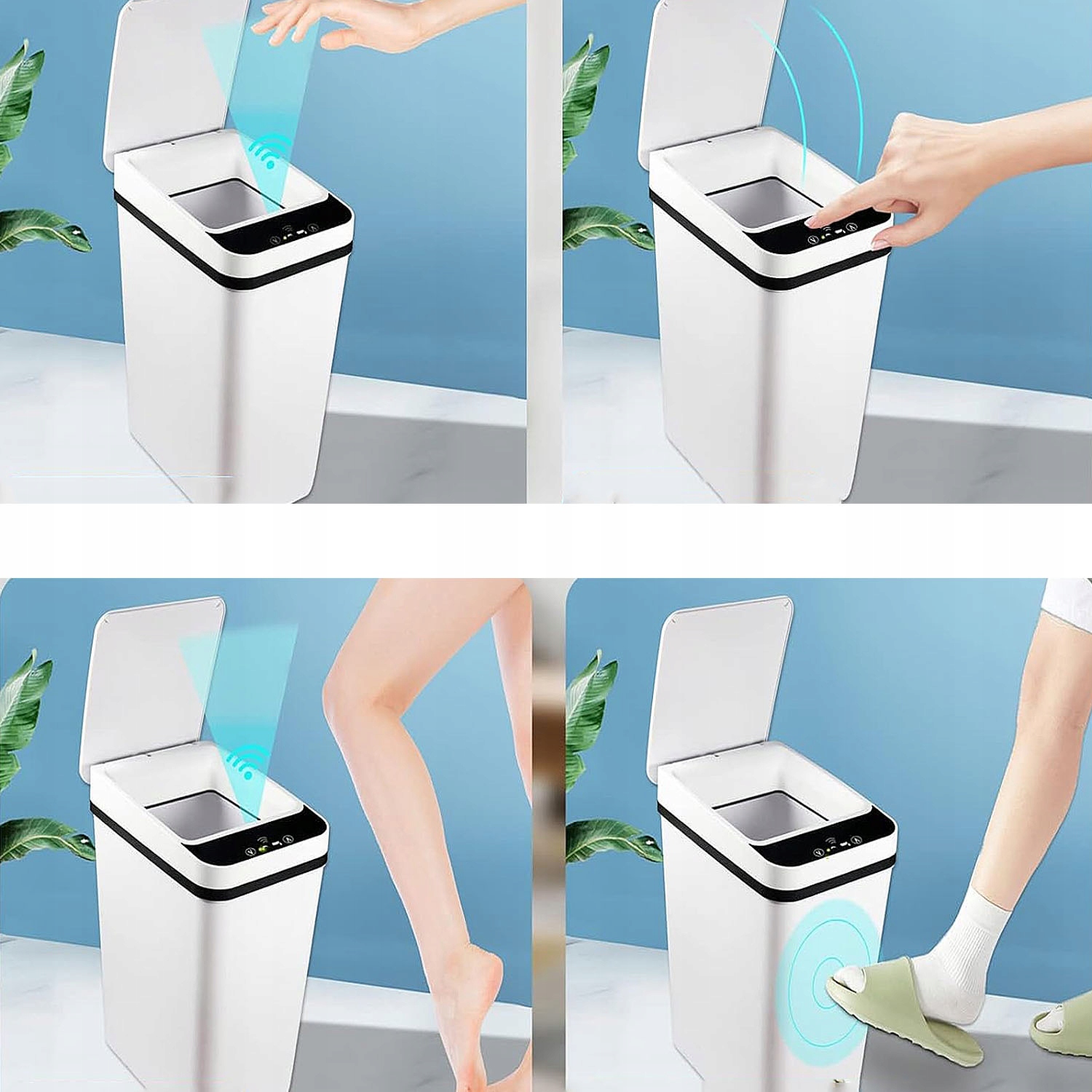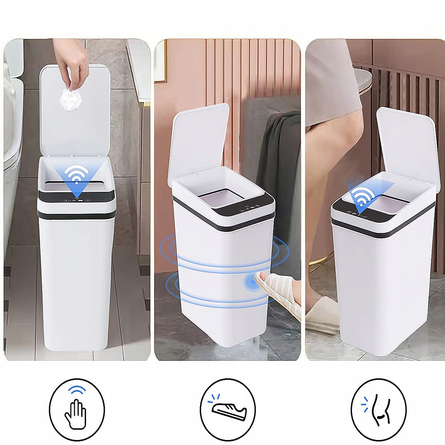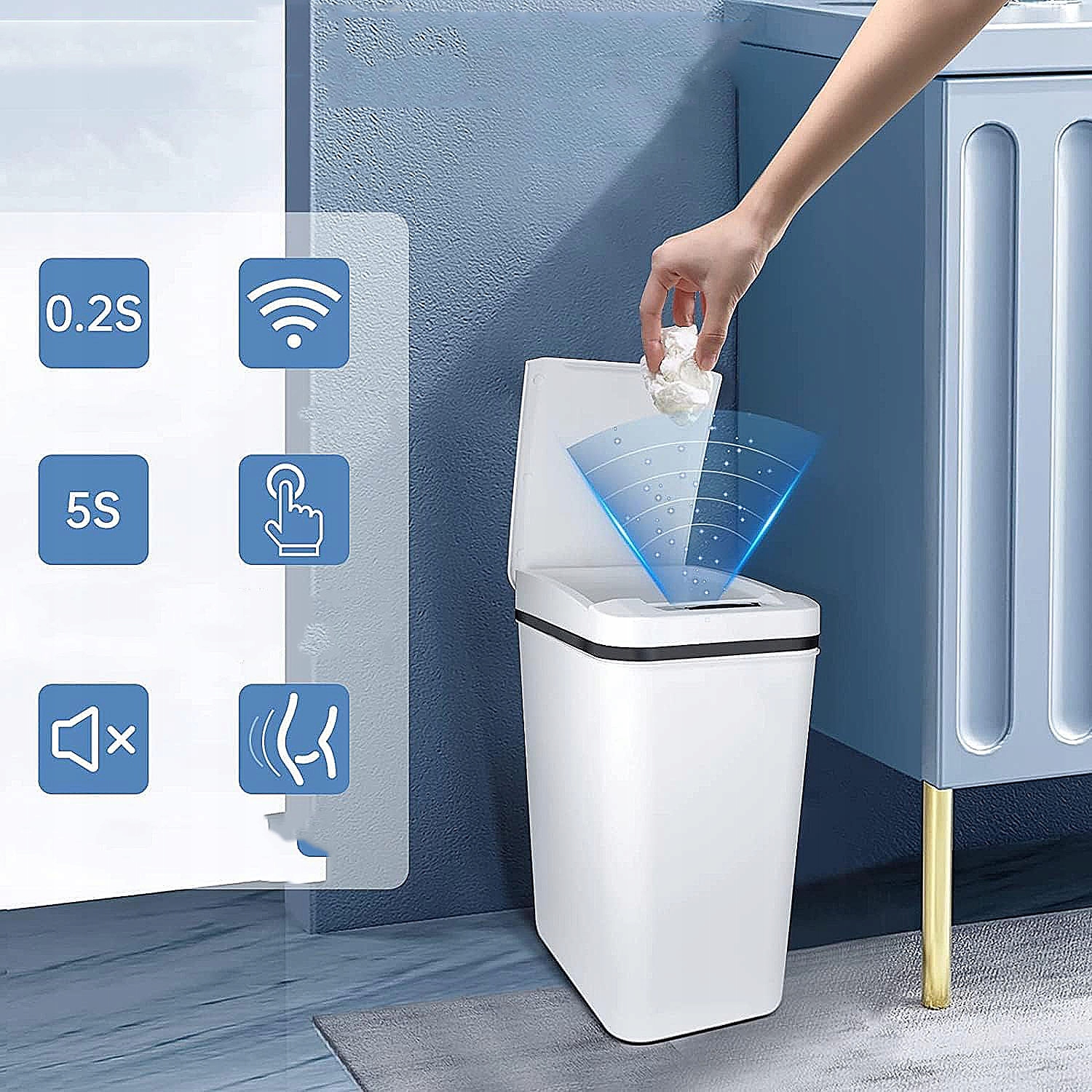 ✔️Благодаря передовой технологии автоматического определения просто взмахните рукой, согните колено, коснитесь или пните инфракрасный датчик, и крышка откроется через 0,5 секунды.