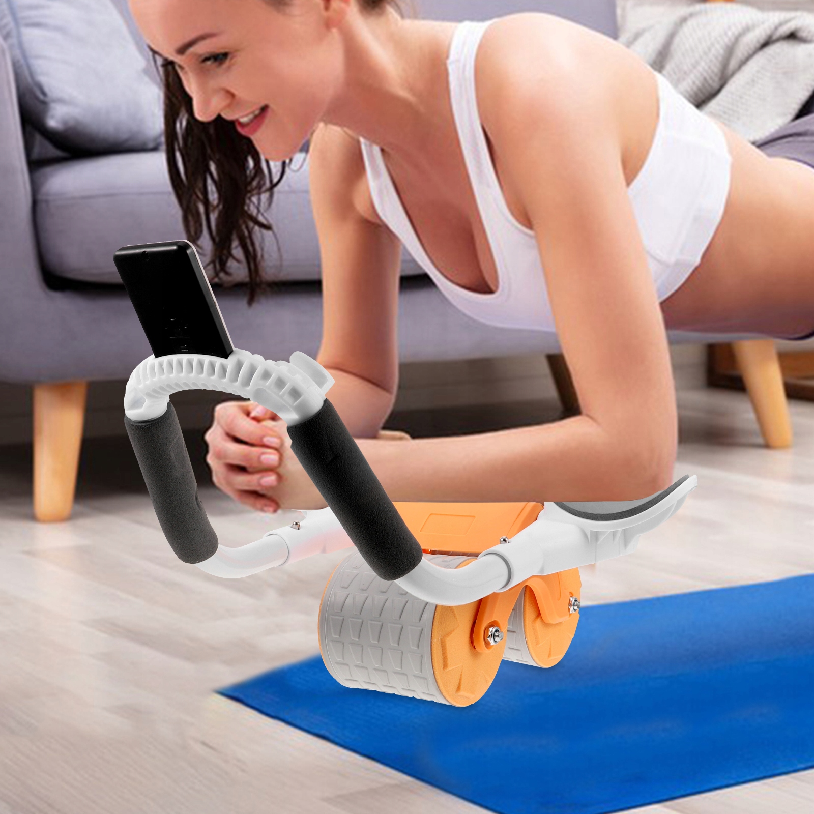 ✅-Колесо для упражнений оснащено подставкой для телефона, которая позволяет слушать музыку или смотреть фильмы во время тренировки, что делает тренировку более приятной и помогает сохранять мотивацию.