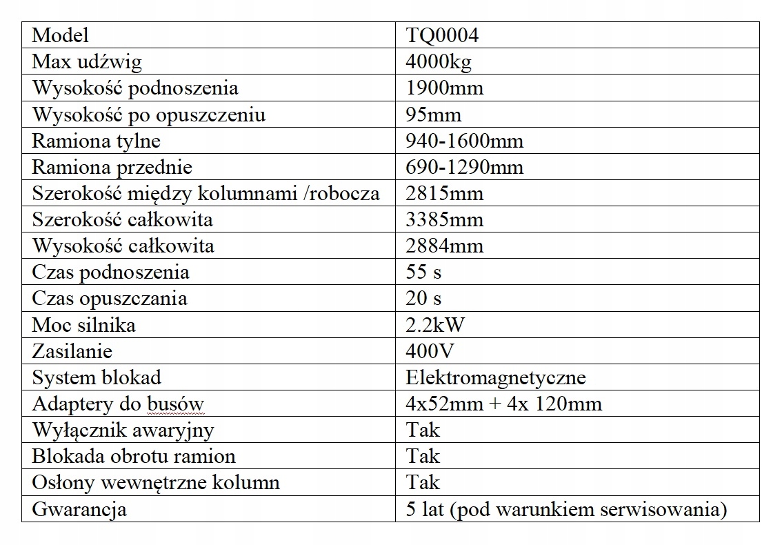 АВТОМАТИЧНИЙ ПІДІЙНИК ДВОКОЛОННИЙ 4T TQ0004 - TECHWAR
