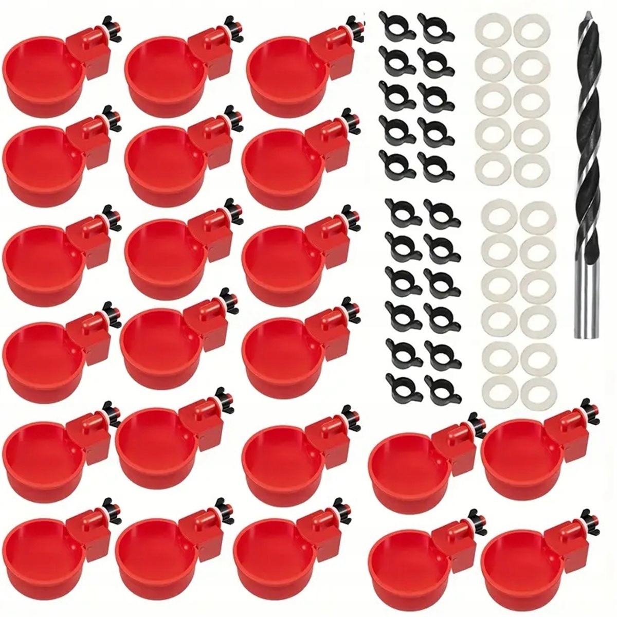 Наши пьющие просты и практичны, что означает, что они не требуют каких -либо сложных инструментов или навыков для их установки и работы. Просто сделайте отверстия в контейнерах для воды с помощью тренировки, включенного в набор, и подключите теги. p>