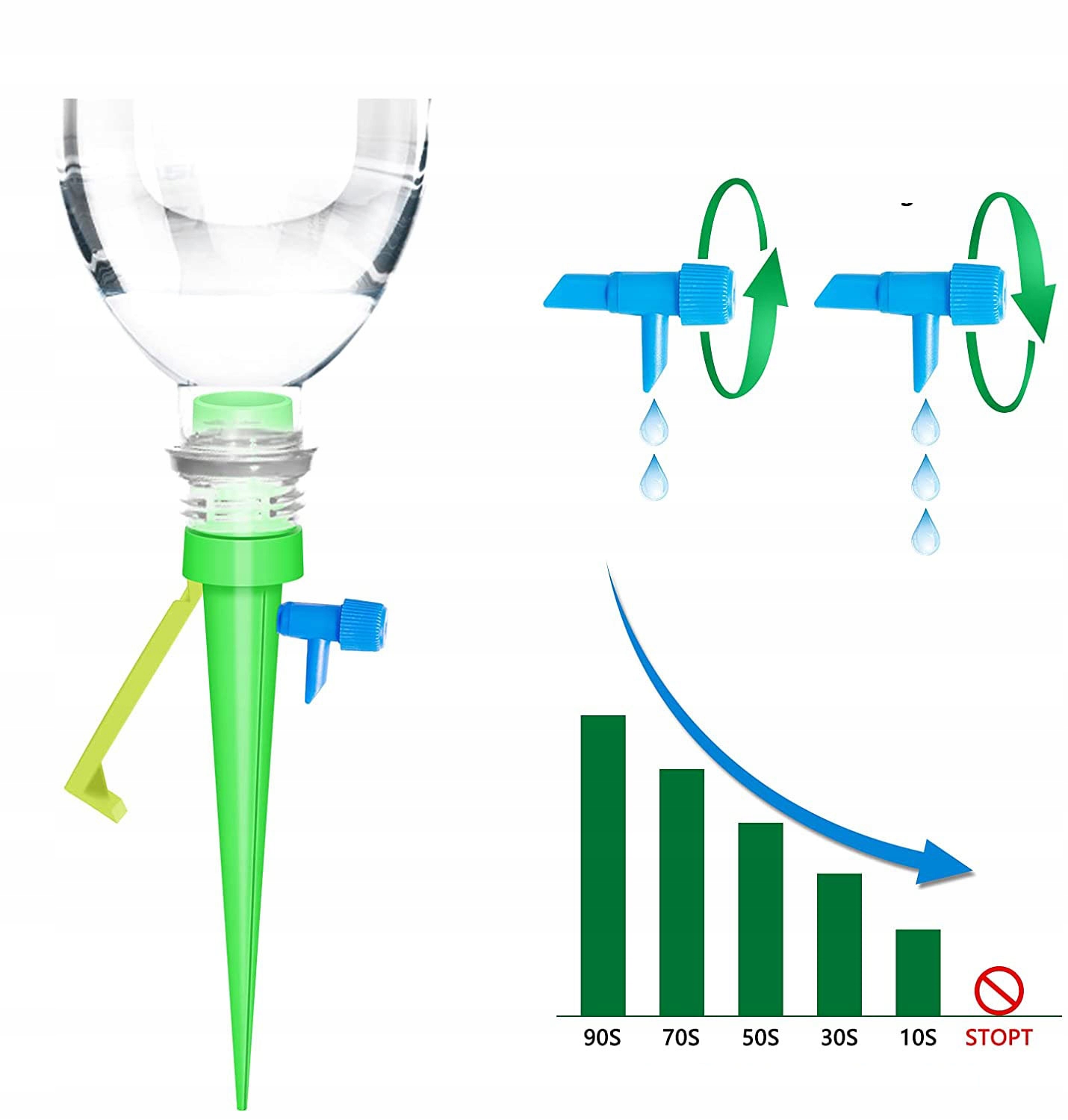 Устройства для полива растений с регулирующим клапаном, предназначенные для контроля скорости потока, могут контролировать скорость падения 25 с/1 капля, капли с медленным выпуском действуют 1-15 дней, в зависимости от ваших праздничных дней.