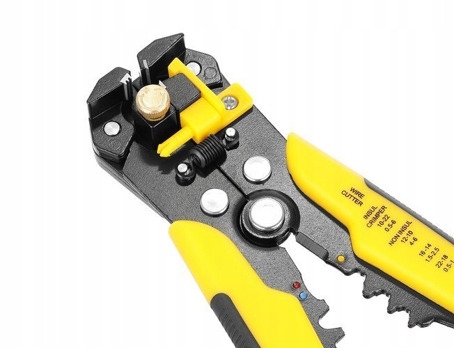 - ТЕХНИЧЕСКИЕ ХАРАКТЕРИСТИКИ -цвет: желтый и черный; материал: хромованадиевая сталь/ПП/ТПР; противоскользящая накладка: ДА; механизм: передний, автоматический; зачистка изоляции кабеля диаметром: 0,2 – 6 мм² (10 – 24 AWG); обжим изолированных клемм разъема: 0,5–6 мм² (22–10 AWG) и неизолированных: 4–6 мм² (12–10 AWG), 1,5–2,5 мм² (16–14 AWG), 05 – 1 мм² (22–18 AWG); размеры (длина/ширина/высота): 20/10/3 см; вес: 0,35 кг; вес в упаковке: 0,4 кг.