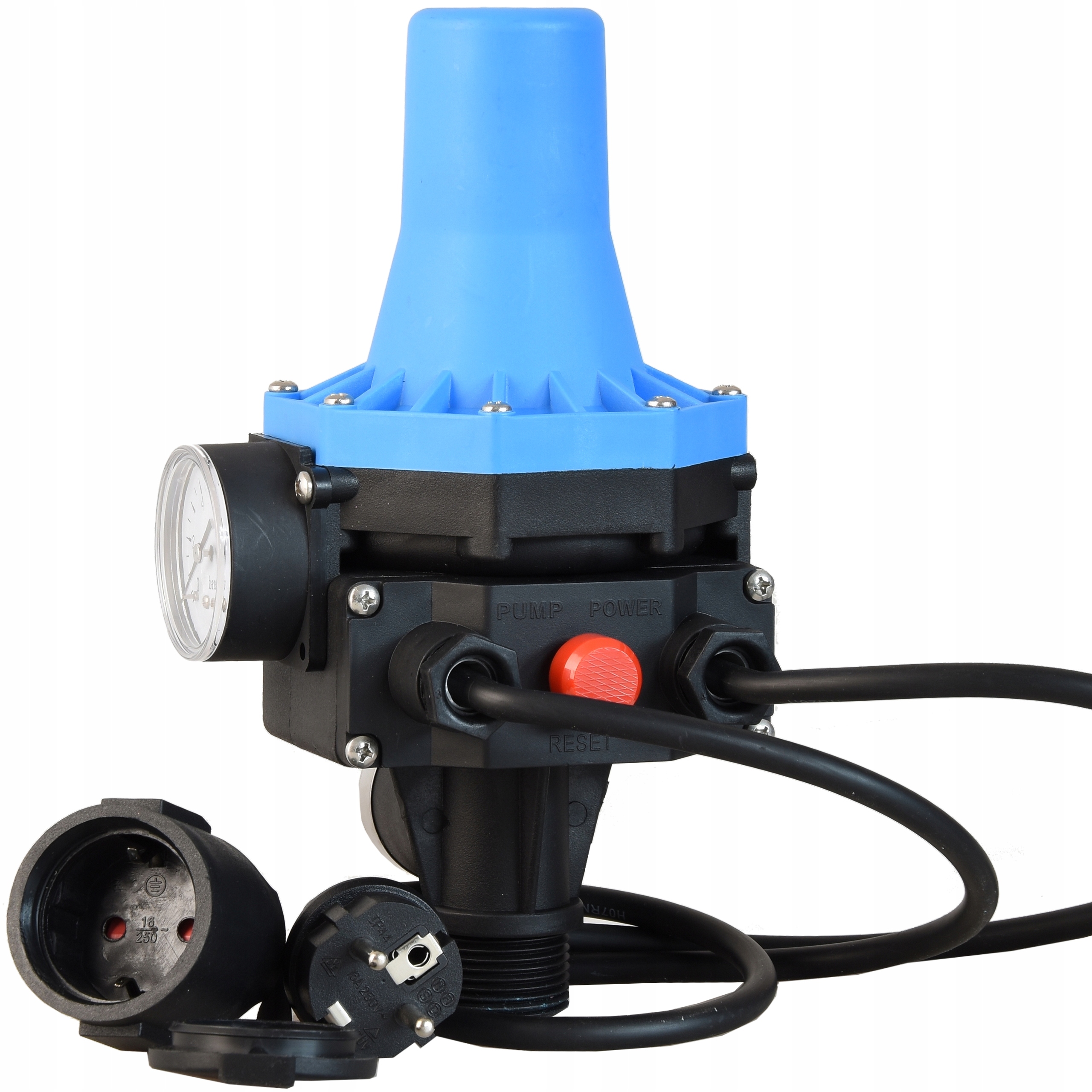 Устройство имеет функцию защиты от сухого хода (работы насоса без воды). В случае нехватки воды автоматическое устройство отключает насос, предотвращая его разрушение. Устройство может работать напрямую с насосами, двигатели которых во время работы потребляют ток не более 10 А (до 16 А при запуске). Устройство защищает установку от затопления из-за небольших протечек.
