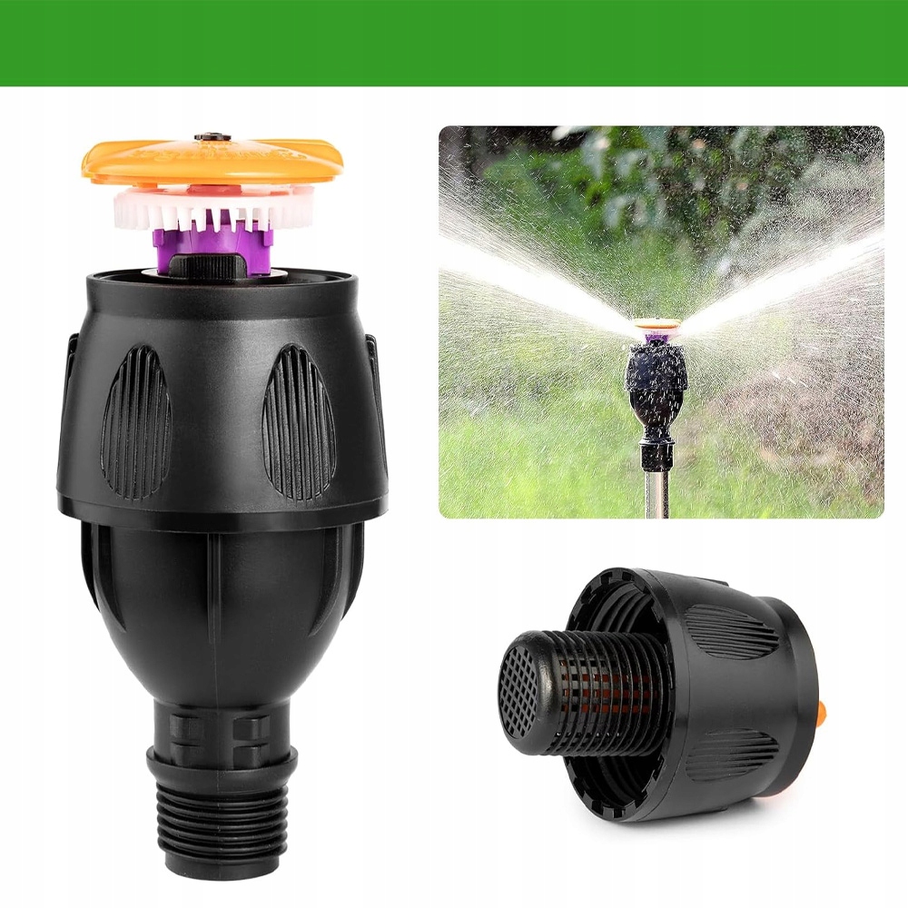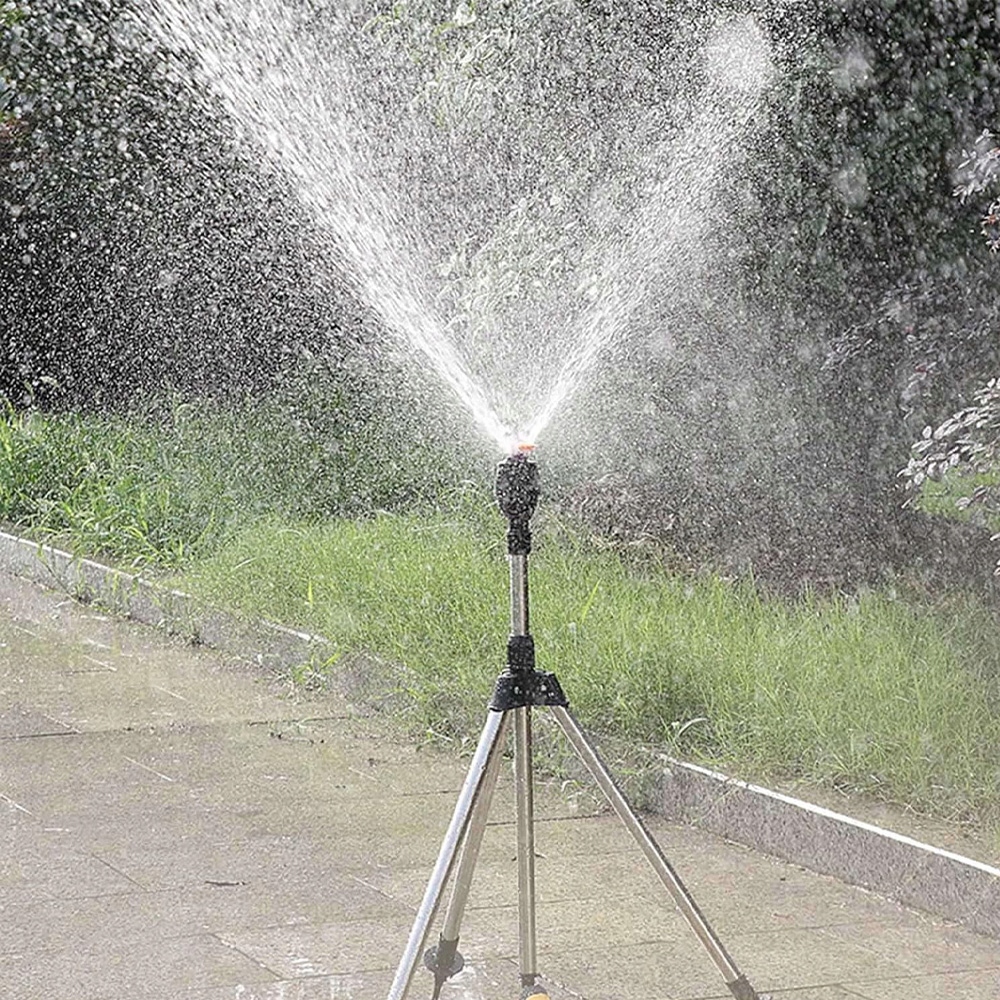 Высота штатива регулируется, а расстояние и разрыв потока можно отрегулировать, обеспечивая диапазон от полукруга до круга. Угол вращения также можно отрегулировать в диапазоне от 30 до 360 градусов, что является гибким и удобным в использовании. Обеспечивает орошение каждого угла сада. (Диаметр потока зависит от давления воды, чем выше давление воды, тем больше площадь орошения).