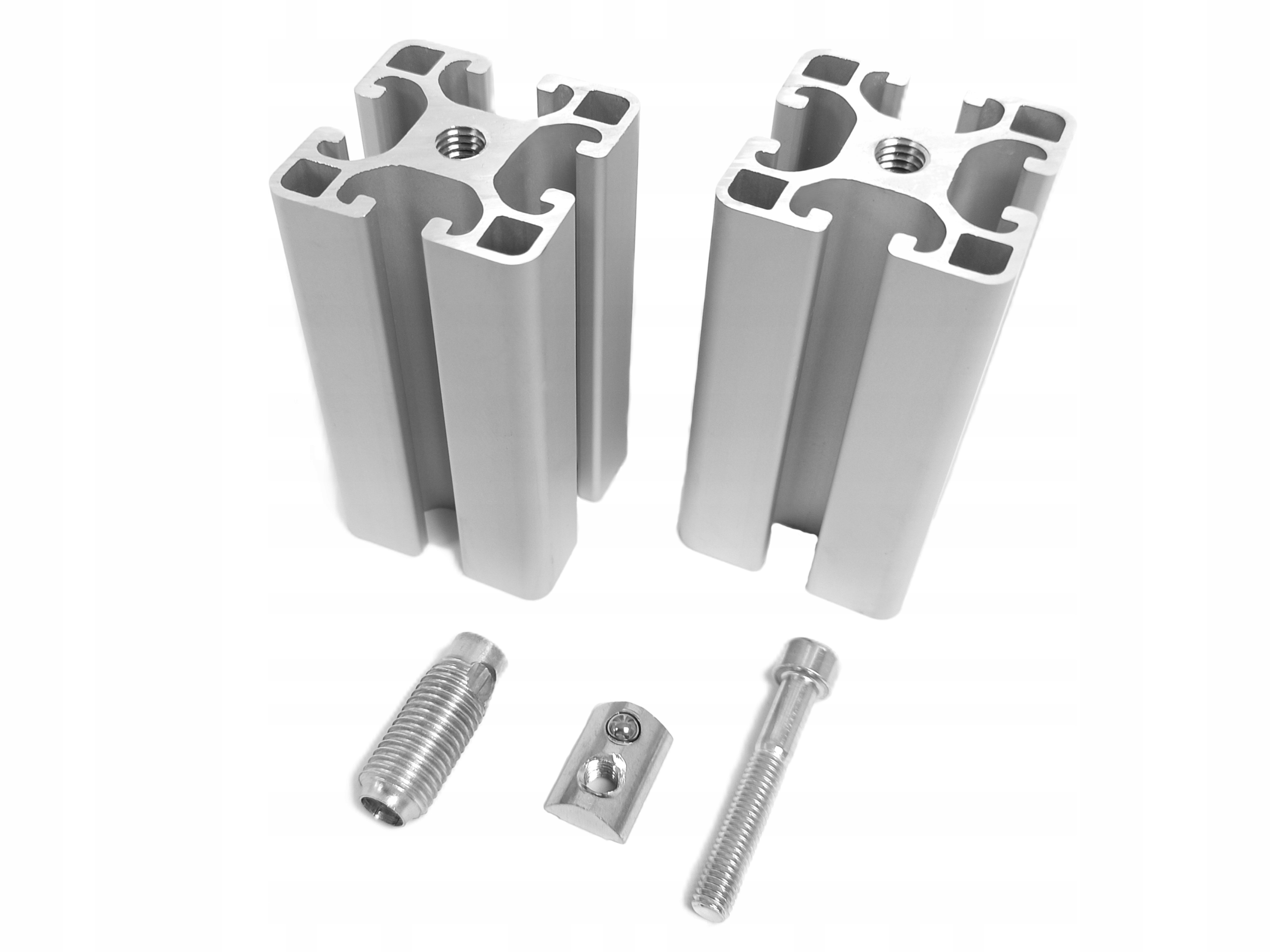 1. Могу ли я использовать эти разъемы для любых профилей конструкции 30x30 мм и 30x60 мм? Профили 30x30 мм и 30x60 мм чаще всего имеют необходимую канавку N8 (около 8 мм). Однако наверняка, что 100% крепежные элементы соответствуют профилям из нашего предложения. Как подготовить профили для сборки автоматического разъема? Рукав с левой резьбой должен быть привинчен в один из профилей, вставьте гайку во второй профиль, скрутите винт из набора и наслаждайтесь твердым и эстетическим соединением профилей 3 Могут ли они быть использованы для соединений с профилями 30x60 из вашего предложения? >