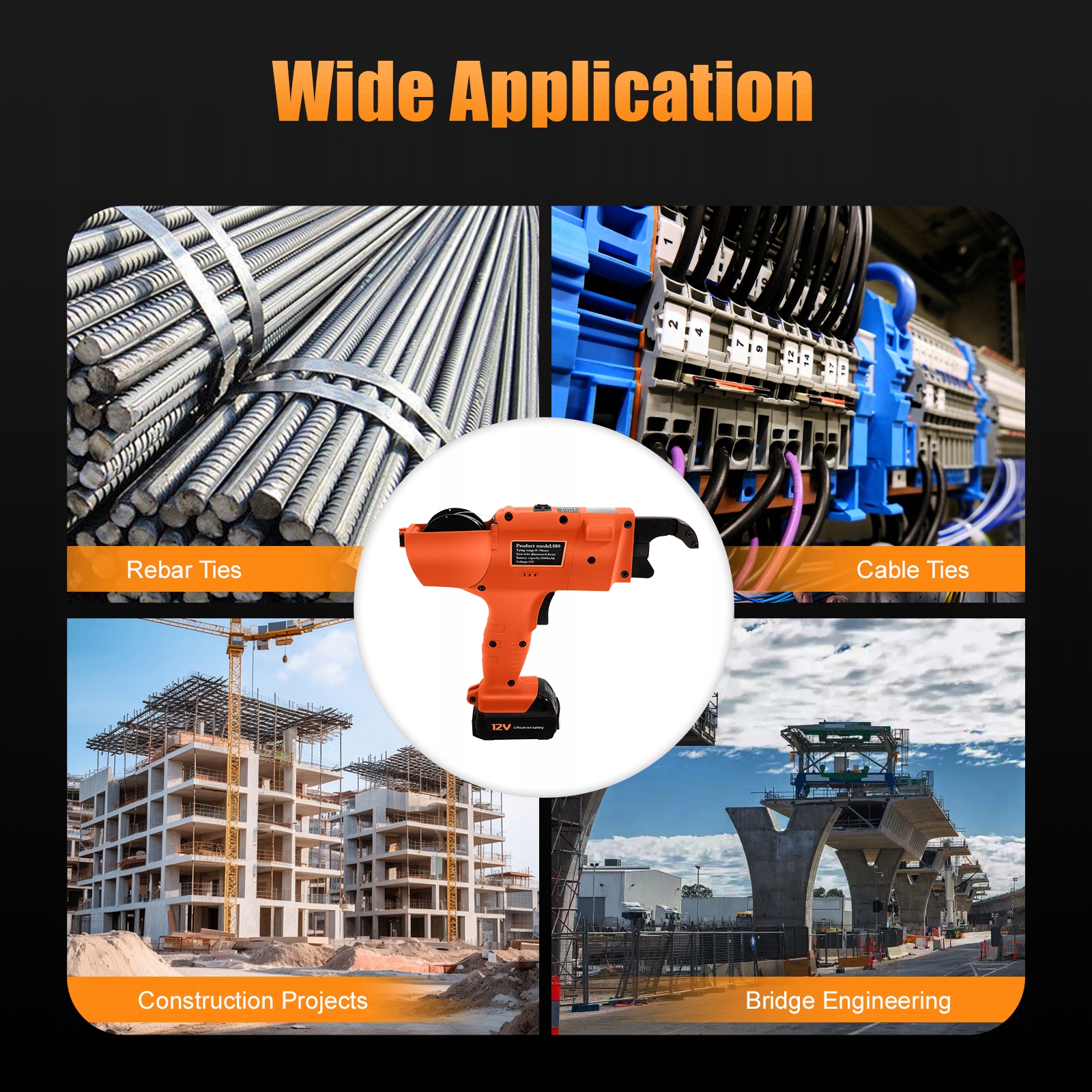 Подходит для соединения стальных стержней и может широко использоваться на строительных площадках, больших мостах, автомагистралях, железных дорогах, туннелях, горнодобывающем строительстве, фермах, садовых заборах, напольных трубопроводах, сетках полов с подогревом и т. д.