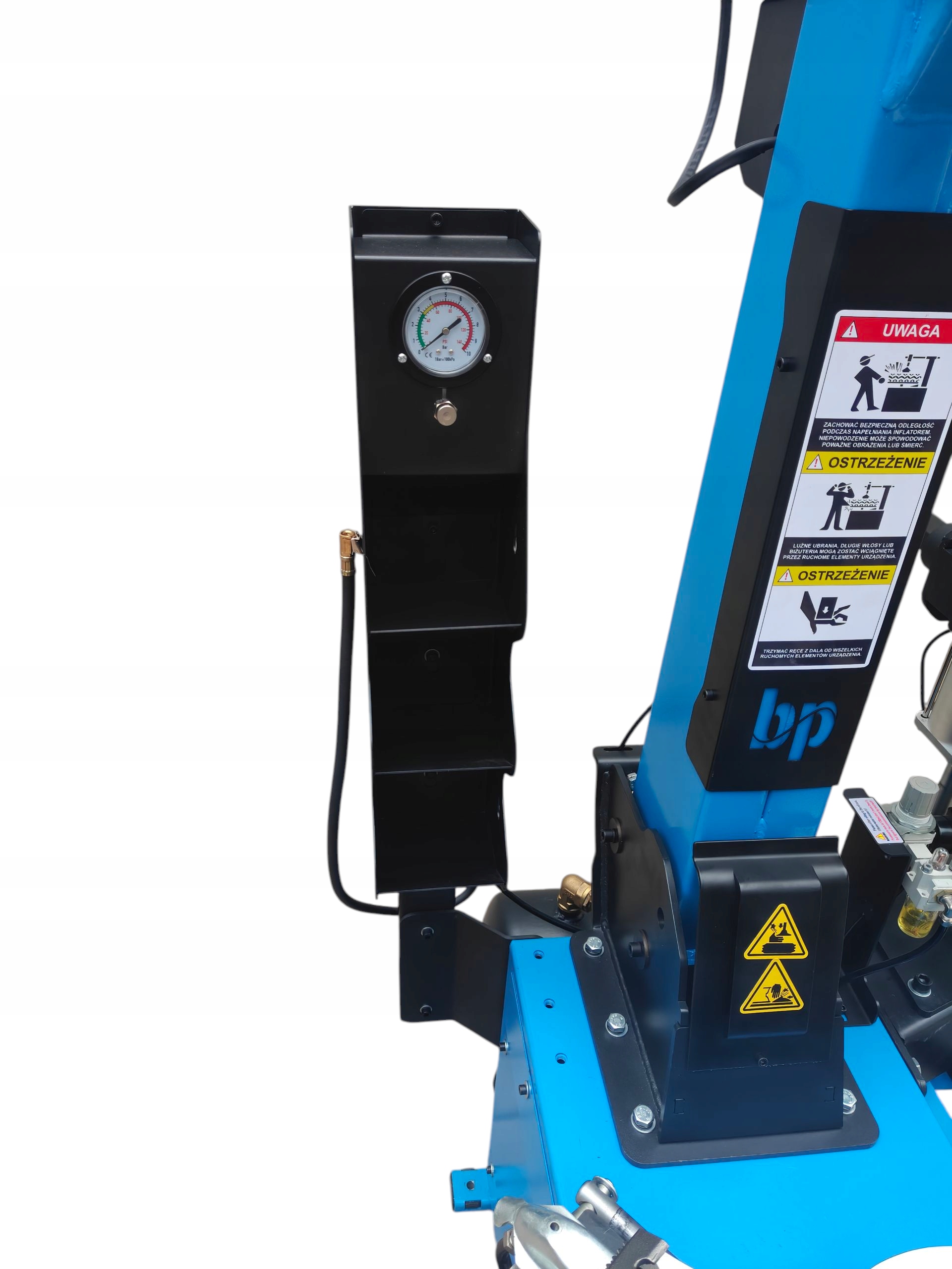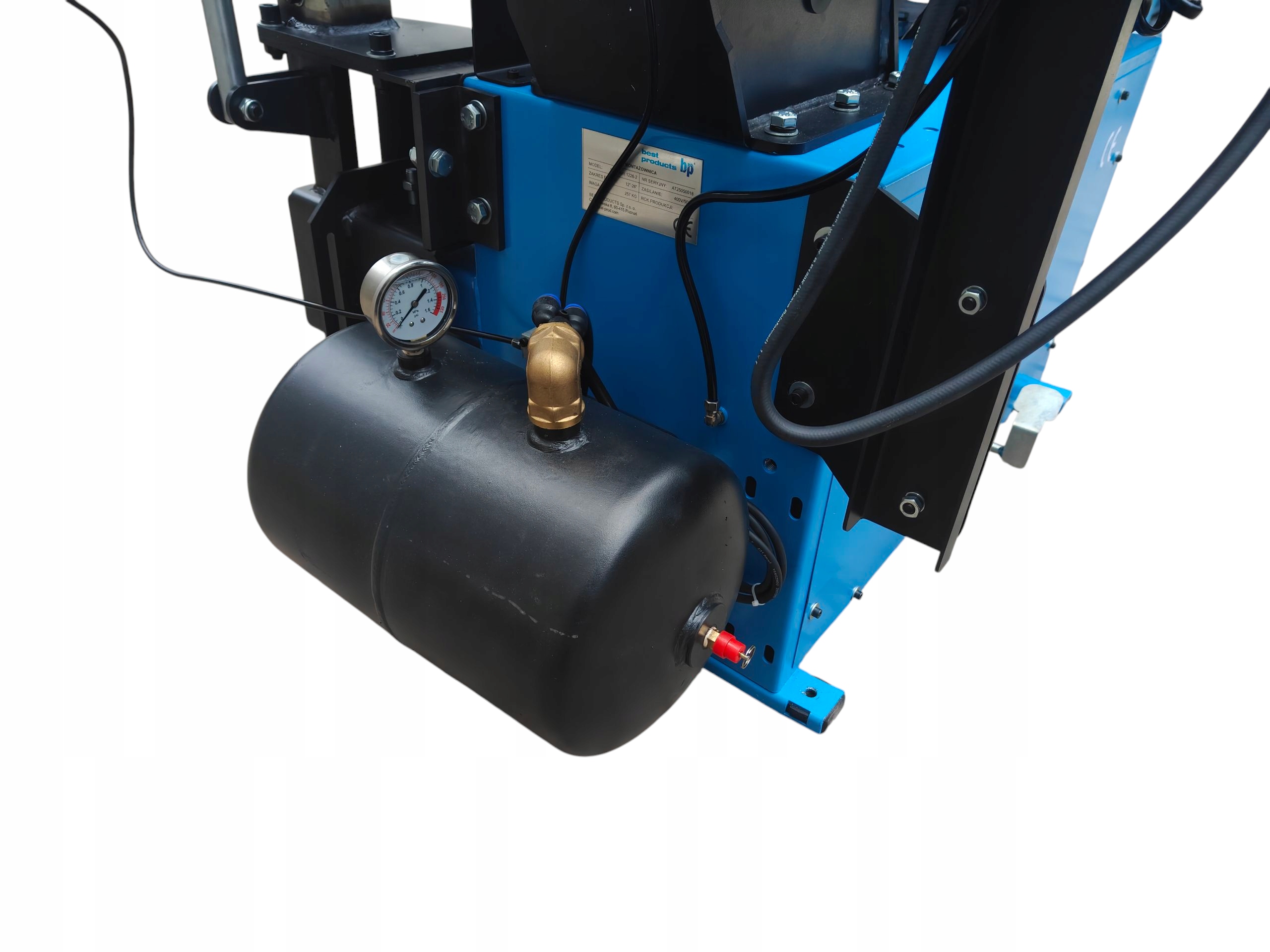 Вертикальная мачта перемещается к краю обода автоматически с помощью пневматического привода. Скорость вращения стола плавно регулируется педалью в диапазоне 6-12 об/мин. Машина оснащена удобным нагнетателем.