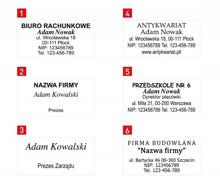 ВАЖНО! Если содержимого нет, штамп будет отправлен без текста и со случайным цветом подушечки. Мы ждем отправки информации в течение 24 часов с момента размещения заказа на Allegro. При их отсутствии штамп будет отправлен без текста.