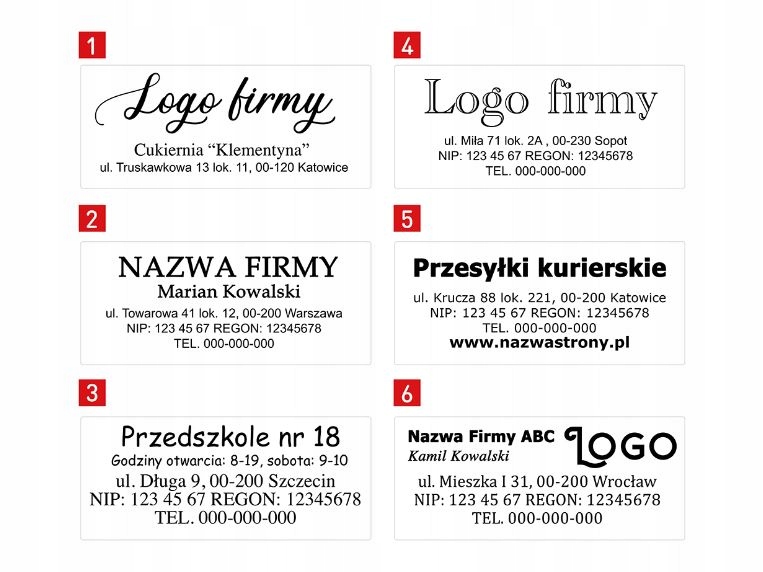 ВАЖНО! Если содержимого нет, штамп будет отправлен без текста и со случайным цветом подушечки. Мы ждем отправки информации в течение 24 часов с момента размещения заказа на Allegro. При их отсутствии штамп будет отправлен без текста.