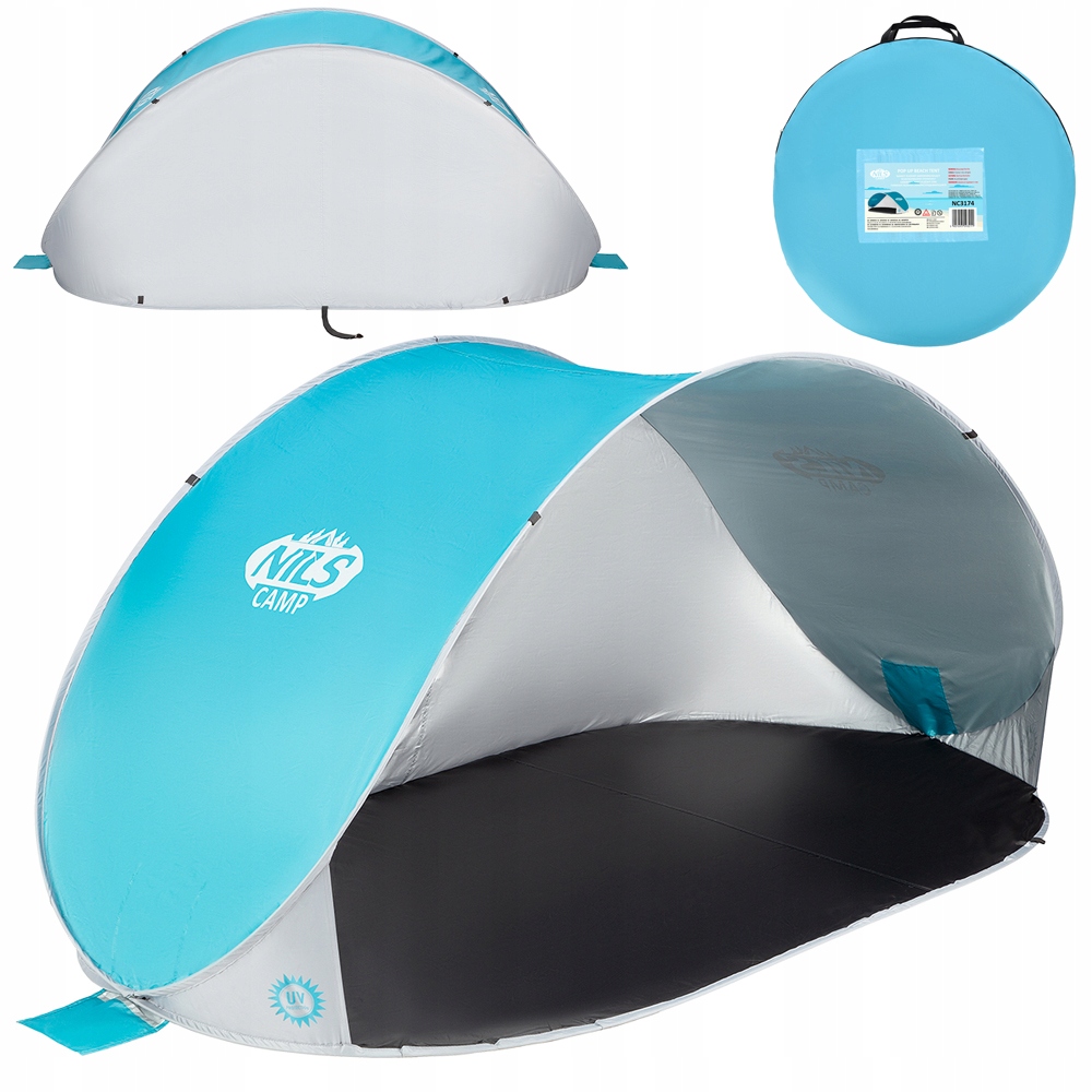 NC3174 изготовлен из материалов высочайшего качества. Материал пола водонепроницаем, поэтому влажный песок не станет проблемой. Мы также не боимся дождя. В палатке используется технология предотвращения перегрева. Это очень важно, особенно в жаркие дни, когда предполагается, что укрытие в палатке спасет от высоких температур. Также палатка имеет покрытие, защищающее от УФ-лучей.