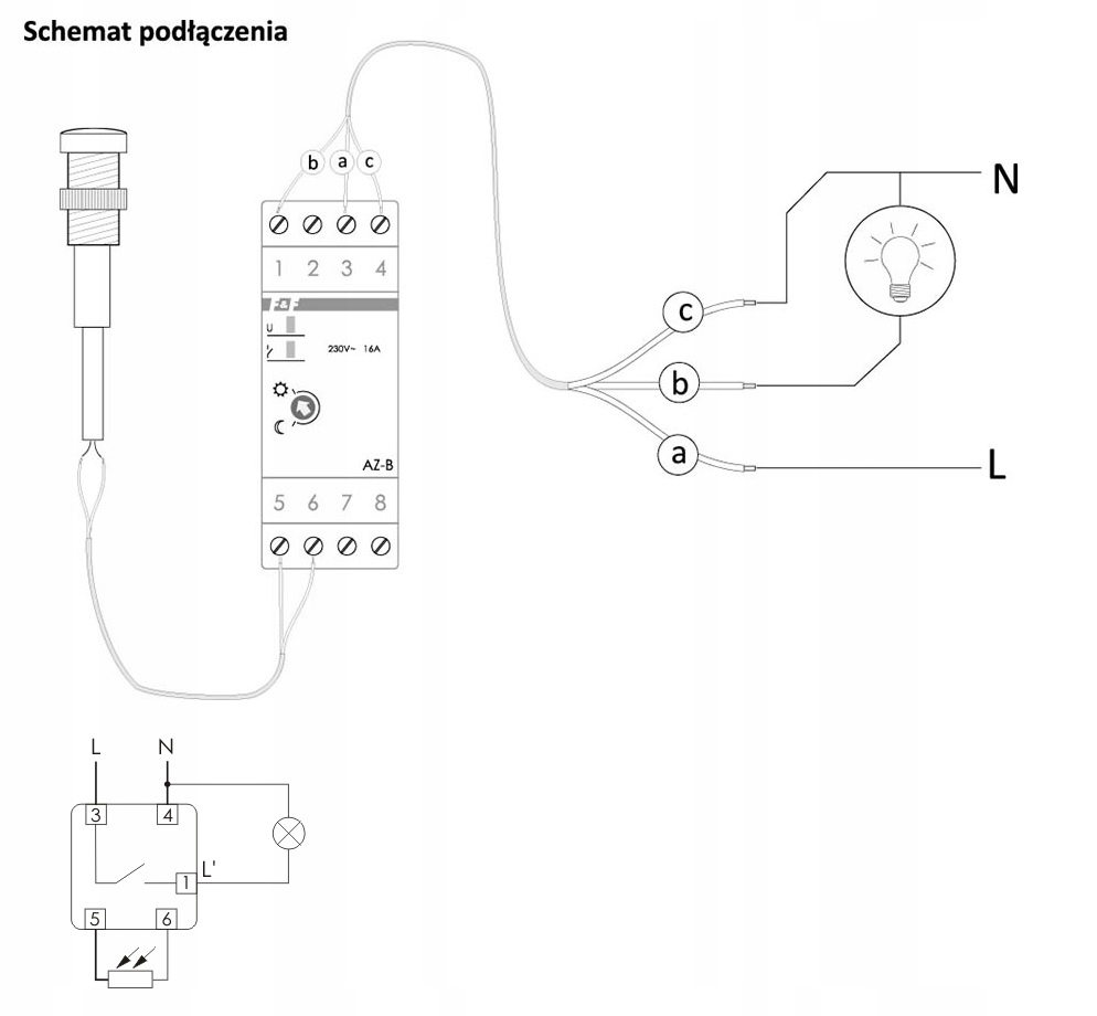 Разместите прибор в месте с постоянным доступом естественного дневного света, который будет вызывать включение и выключение освещения из-за изменения его интенсивности. Время включения освещения может быть установлено пользователем с помощью потенциометра. Поворот в сторону «луны» — включится позже, поворот в сторону «солнца» — включится раньше. Автомат имеет систему, которая задерживает включение и выключение освещения, что исключает влияние помех (например, молнии) на работу устройства.