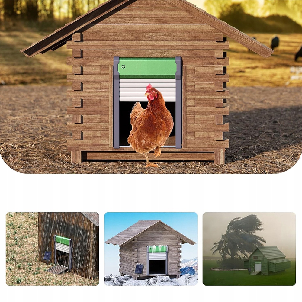 Этот автоматический механизм открывания дверей можно быстро и легко установить с помощью полностью собранных аксессуаров. Дверца курятника изготовлена из высококачественного алюминиевого сплава, безопасна и долговечна, не деформируется, не теряет цвет, устойчива к коррозии и ржавчине, водонепроницаема по стандарту IP67.