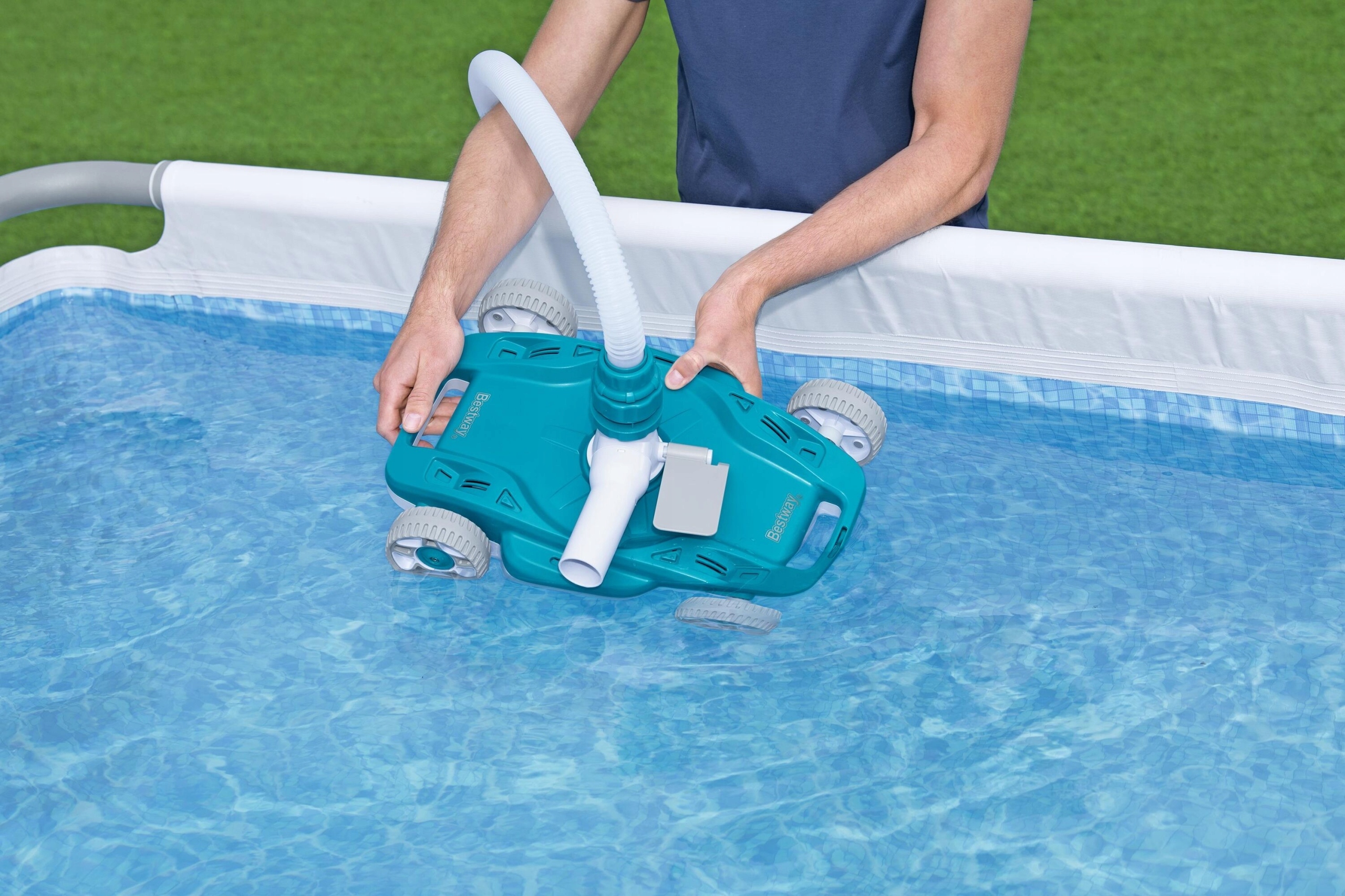 Automatic Bool Vacuum Cleamer Бестса - это современное и очень эффективное устройство для очистки любого типа пула. Это не требует какого -либо складывания, и он готов к использованию сразу после удаления из исходной упаковки. Все, что вам нужно сделать, это подключить его к плавательному насосу и отдохнуть в саду, чтобы посмотреть, как вы начинаете чистить бассейн. Вакуумный очиститель, движущийся в одиночестве в нижней части бассейна, будет собирать все примеси в специальной камере для загрязнения, а самые маленькие будут останавливаться в фильтре насоса. При контакте с стеной бассейна присоединятся клапаны, и вакуумный очиститель автоматически изменяет направление вождения. Вы можете легко и быстро удалить листья, траву, насекомых, песок, а также эти незначительные примеси в воде.