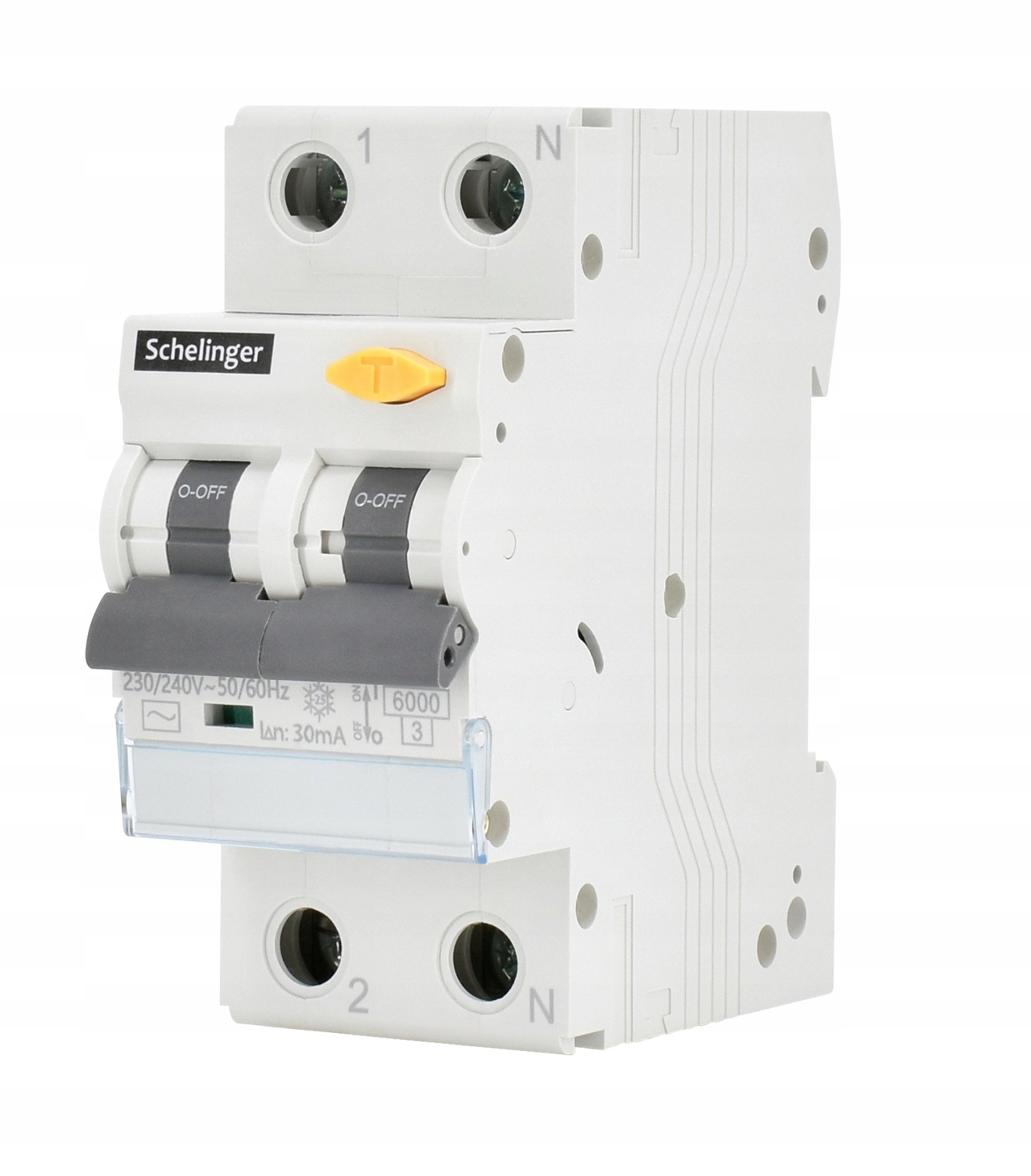 Автоматический выключатель RCBO 2P C 25A 30mA ТИП AC A08-GKL-AC-C25 Schelinger