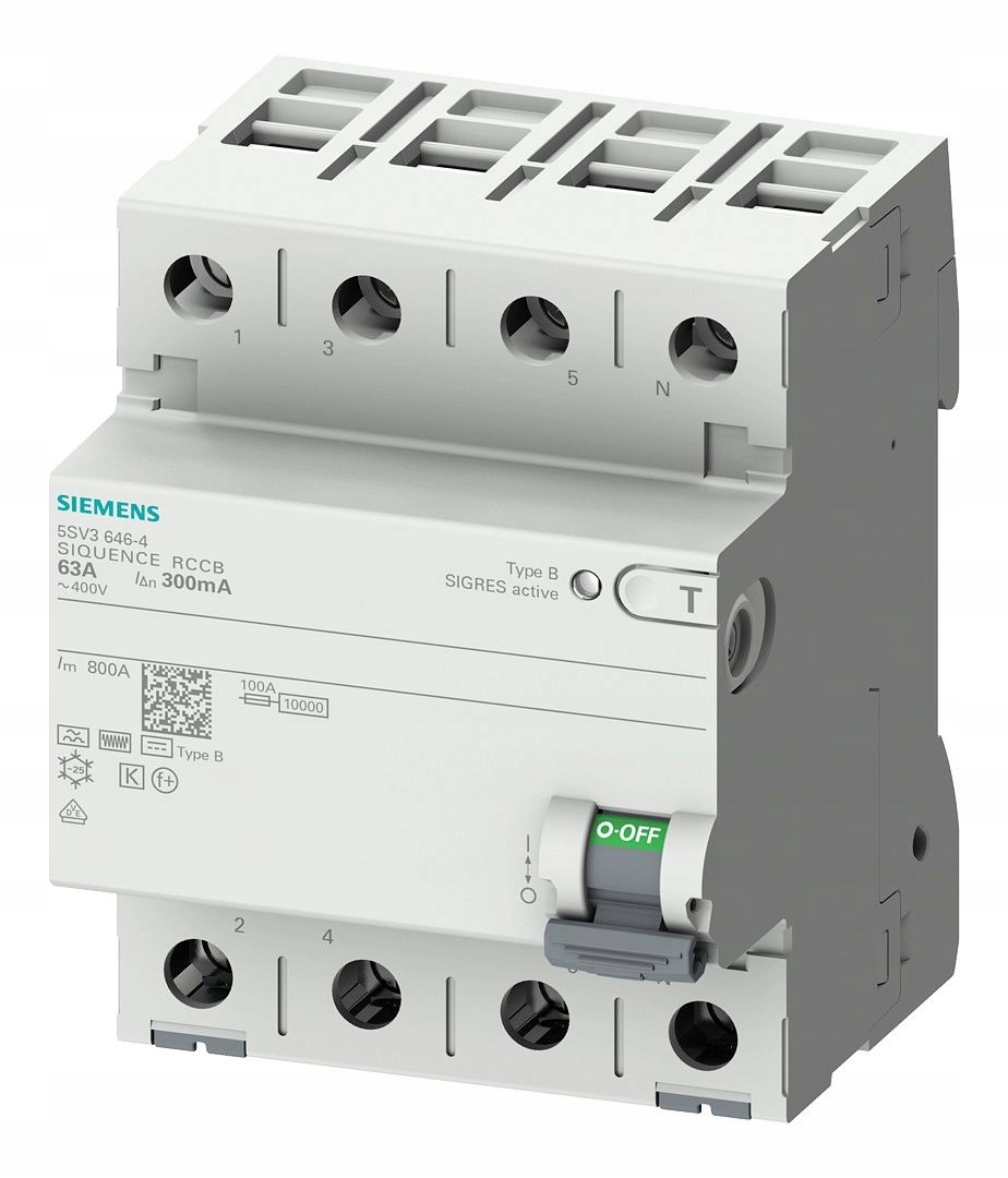 Выключатель FI, 4-полюсный, тип B, с короткой задержкой, In- 40 А, 30 мА, Un AC- 400 В SIGRES - сложные условия окружающей среды, увеличенный период между испытаниями SENTRON 5SV3 FI выключатель для комплексной защиты людей и имущества от поражения электрическим током. Выключатели FI обеспечивают надежную безопасность во время установки благодаря ручке и защите контактов в стандартной комплектации. Благодаря удобному ручному управлению ползунком автоматические выключатели FI можно снять с монтажной рейки или сборной шины без использования инструментов. Код DataMatrix на устройстве обеспечивает быстрый доступ ко всем техническим данным в приложении Siemens Industry Online Support. Устройства безопасности SENTRON можно расширить множеством функций с помощью универсальных аксессуаров модульной системы. Оптимальная технология для вашей безопасности только от Siemens.