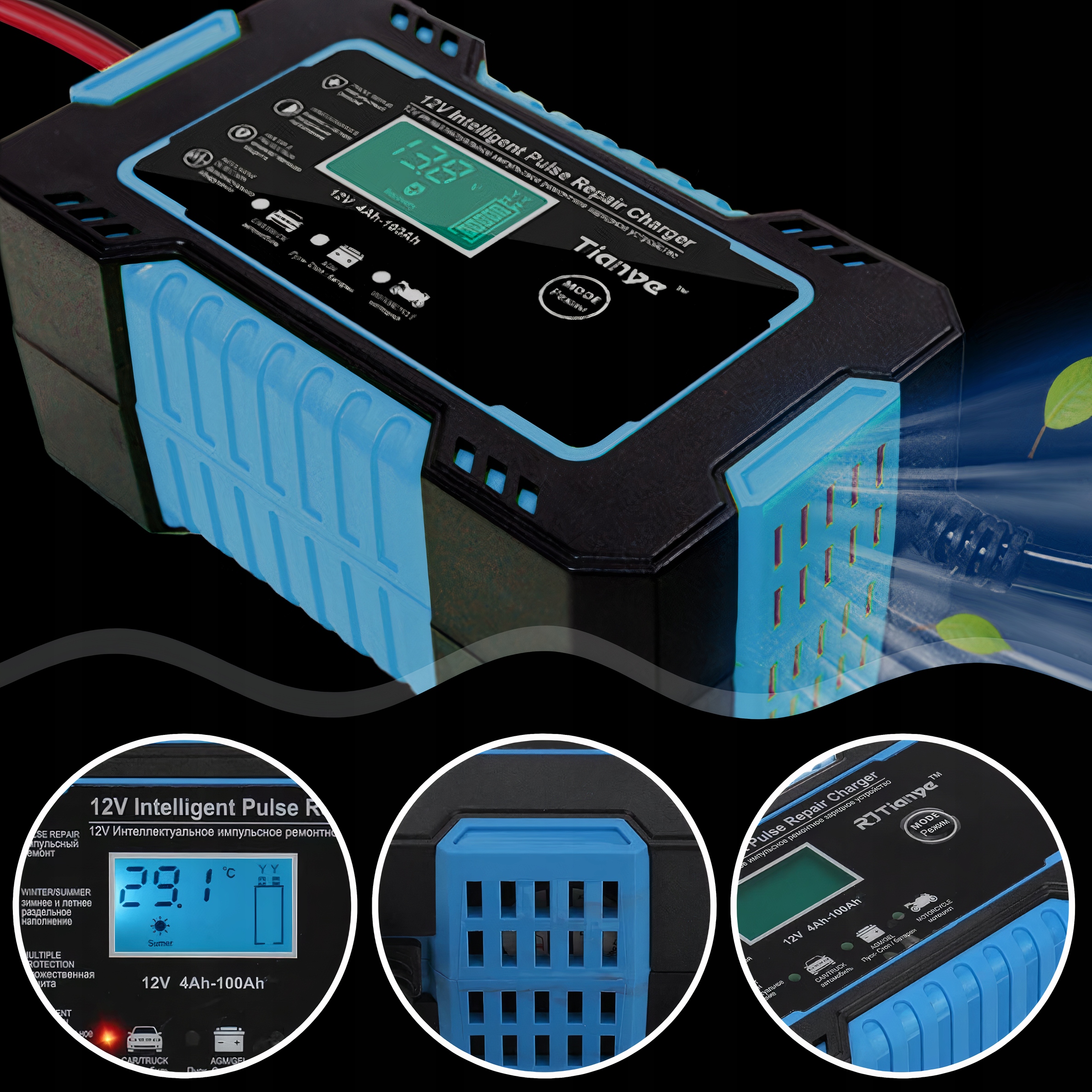 ✅ УМНЫЕ РЕЖИМЫ и ДИСПЛЕЙ ЖК-дисплей: Зарядное устройство адаптируется к температуре, обеспечивая оптимальную зарядку в летнем или зимнем режиме. На четком дисплее отображается информация о процессе зарядки, напряжении и температуре.