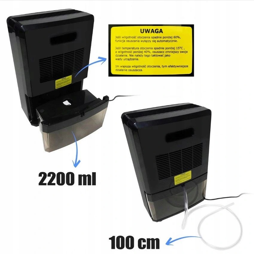 ⭐ Осушитель оснащен большим резервуаром для воды общей емкостью 2200 мл (приблизительно 1700 мл полезной емкости). Устройство автоматически выключится при достижении максимального уровня воды в резервуаре, а на панели управления загорится красный светодиод, указывающий на необходимость опорожнения резервуара. Резервуар имеет съемную крышку, которую легко чистить.