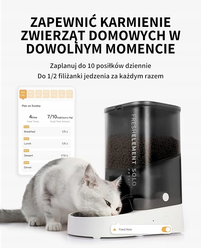 - Автоматический дозатор корма PETKIT Fresh Element Solo, изготовлен из высококачественного пищевого АБС-пластика и нержавеющей стали 304. Большая емкость 3 литра, вмещает 1,33 кг сухого корма за раз. Позволяет обеспечить питанием взрослых кошек примерно на полмесяца.