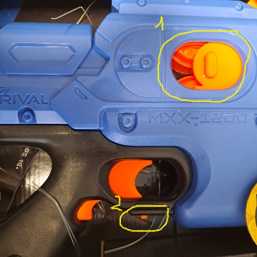 Пусковая установка Nerf Rival Charger — это скорострельная автоматизированная пусковая установка с батарейным питанием и встроенным магазином на 12 дротиков. В комплект с пусковой установкой входят 24 шарика Nerf Rival, которые мы загружаем непосредственно в пусковую установку через отверстие вверху. Теперь все, что вам нужно сделать, это разогнать двигатели с помощью кнопки на рукоятке и нажать на спусковой крючок. Зарядное устройство питается от 6 батареек C LR14, которые продаются отдельно.