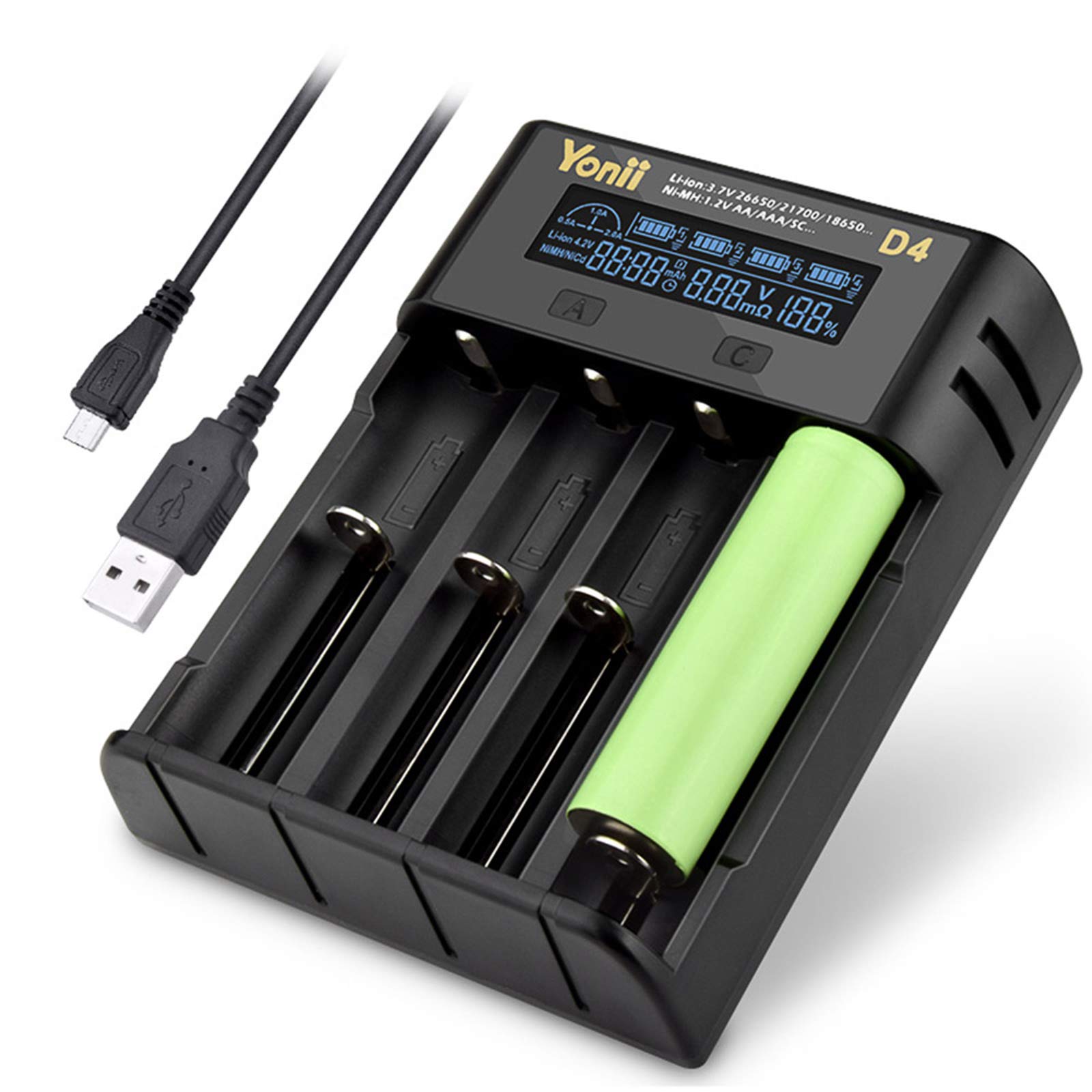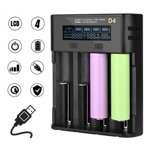 Зарядное устройство с 4 гнездами может заряжать 4 разных аккумулятора одновременно, оснащено 3 входными портами: USB-C / Lightning / Micro, что делает его лучшим универсальным дорожным устройством 18650. зарядное устройство.