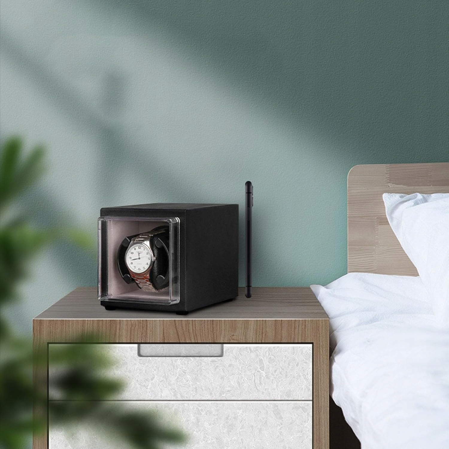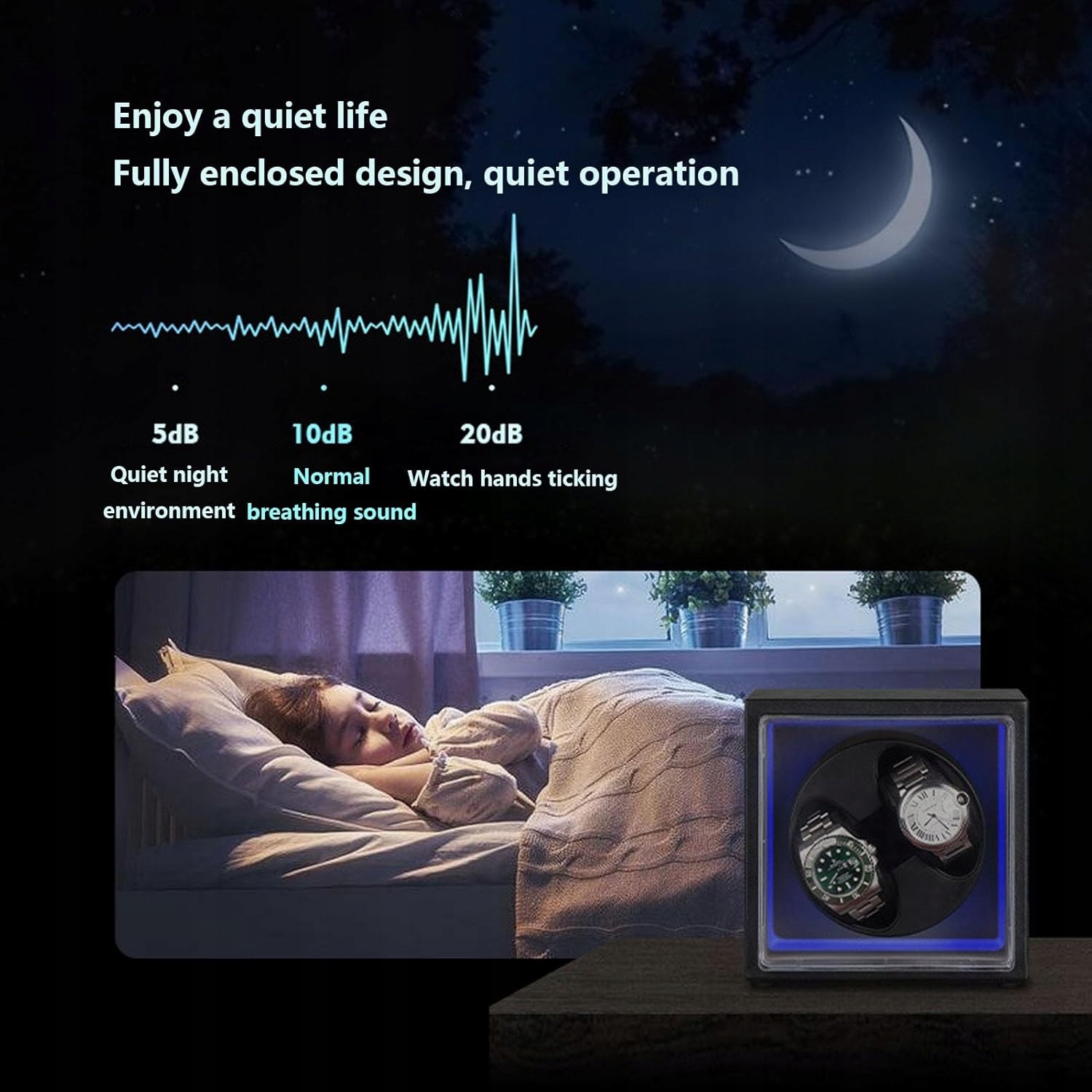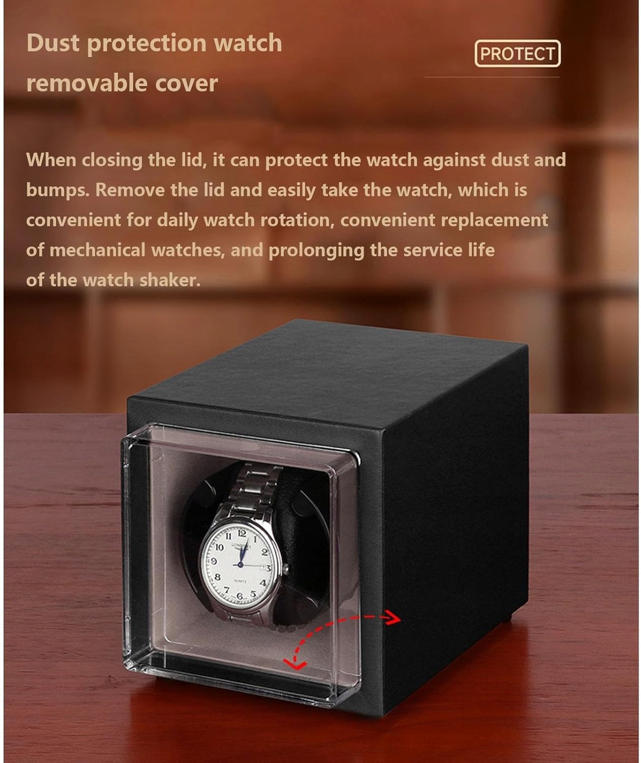 Элегантная одинарная заводная головка для часов, выполненная из кожи, с глянцевым зеркалом и гладкой кожаной подушкой с внутренним узором, элегантно подходит для хранения ваших любимых наручных часов в шкатулке для хранения. Чрезвычайно тихое вращение по сравнению с традиционным намоточным устройством для часов, в котором используются ременные передачи. Наш продукт изготовлен на основе японского двигателя MABUCHI, который отличается прочностью и долговечностью. Кроме того, это может эффективно уменьшить раздражающий звук. Интенсивность шума этого вращающегося ящика для хранения составляет всего 10 дБ, вы практически не чувствуете шума. Простота в использовании: просто нажмите кнопку питания, и намотчик автоматически заведет часы. Может питаться от адаптера 110240 В, входящего в комплект, или от 2 батареек АА (не входят в комплект). Примечание. НЕ используйте их одновременно. Длительное время автономной работы помогает избежать неприятных перебоев в подаче электроэнергии. КОЛЛЕКЦИЯ ЧАСОВ И ДИСПЛЕЯ Эта коробка с автоматическим подзаводом часов — удобный способ собрать ваши механические часы и защитить их от пыли и износа. Идеально подходит для личного использования, а также отличный вариант подарка на день рождения, юбилей, отцу, День Благодарения, Рождество или праздник. ШИРОКАЯ СОВМЕСТИМОСТЬ Подушка на заводном механизме регулируется, будь то женские часы небольшого размера или мужские часы большого размера, прямоугольная заводная головка часов способна удержать их.