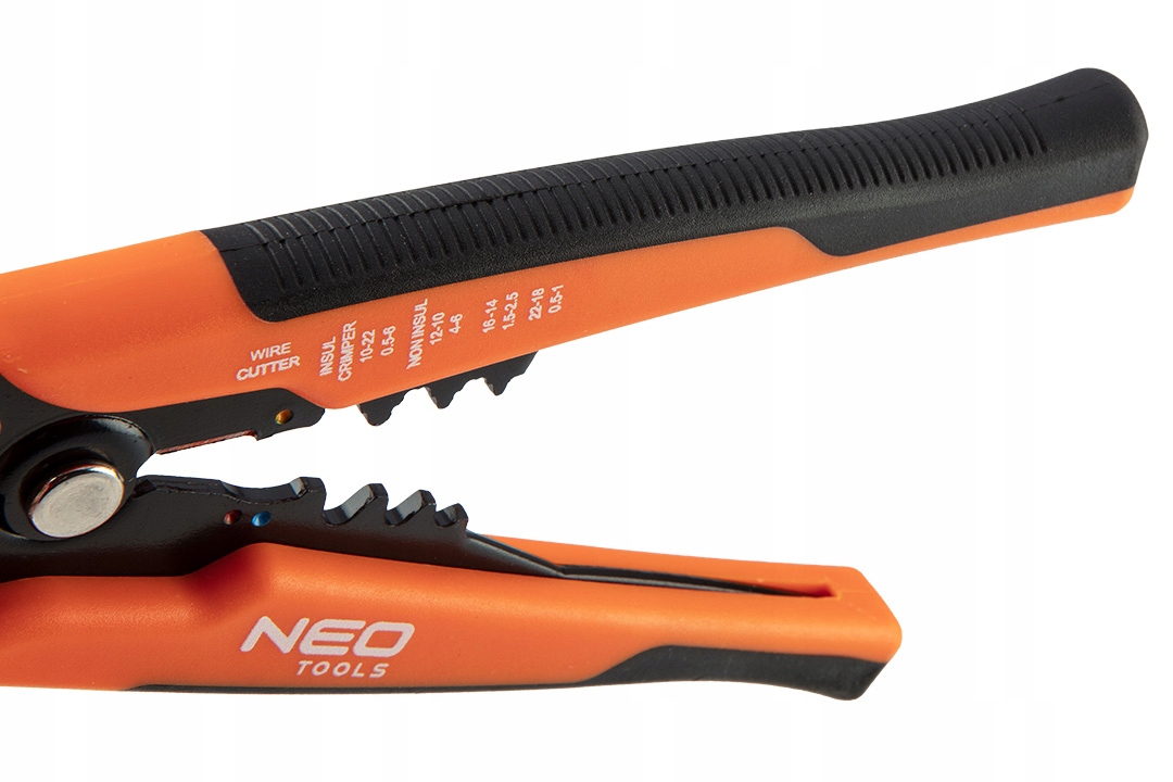 Автоматический инструмент для снятия изоляции NEO (арт. 01-540), передний, размер 200 мм, используется для снятия изоляции и обжима клемм разъемов. Рабочий диапазон для снятия изоляции от 0,5 до 6 мм2 (22-10 AWG) и для обжима клемм от 0,5 до 8 мм2. Губки изготовлены из прочной стали Cr12moV твердостью 52 – 60 HRC, что обеспечивает длительный срок службы инструмента. Инструмент дополнен кусачками, а двухматериальная эргономичная ручка повысит комфорт работы. Бренд NEO оправдывает ожидания профессионалов.