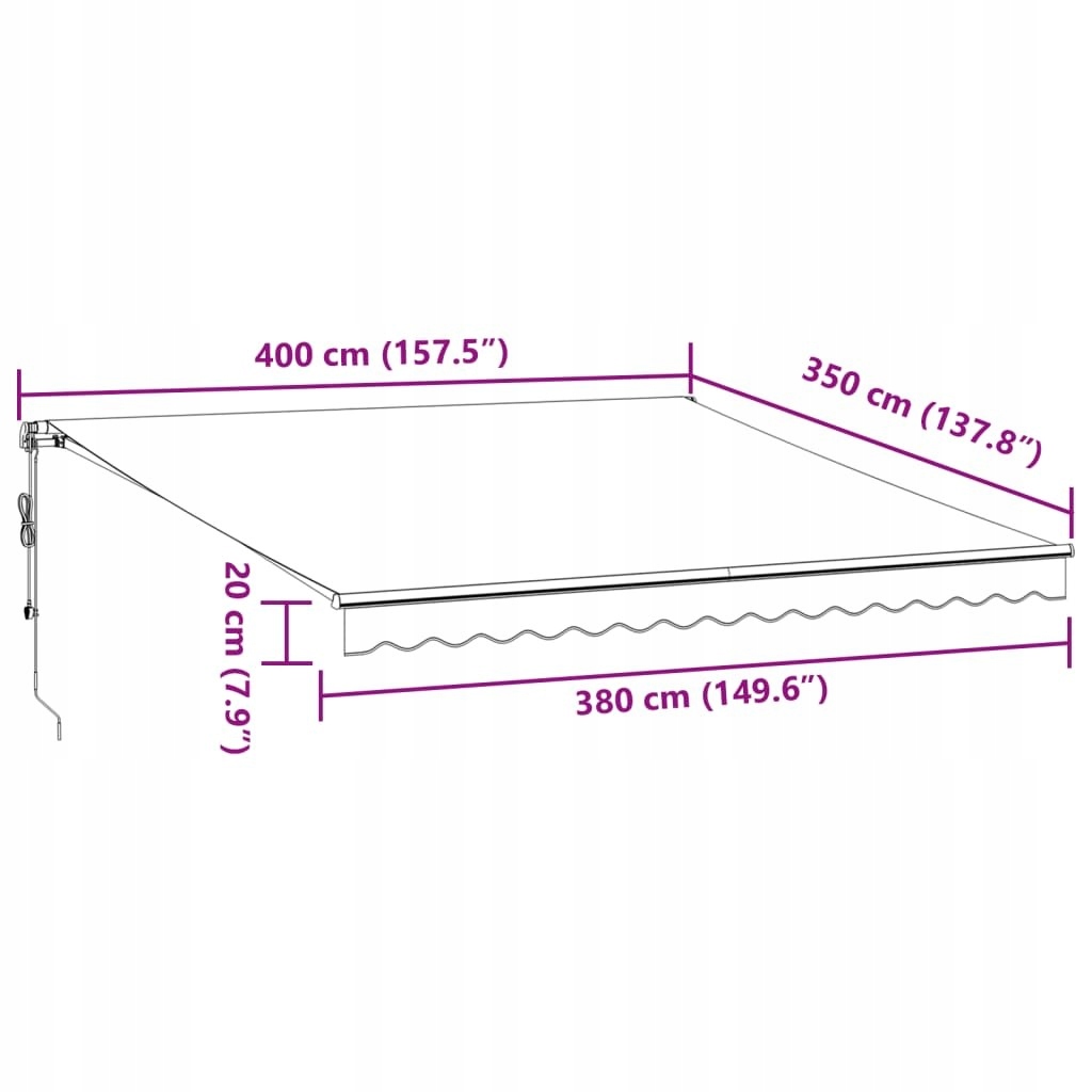 - Материал: окрашенный алюминий, ткань (100% полиэстер) с покрытием x 350 см (длина x ширина)