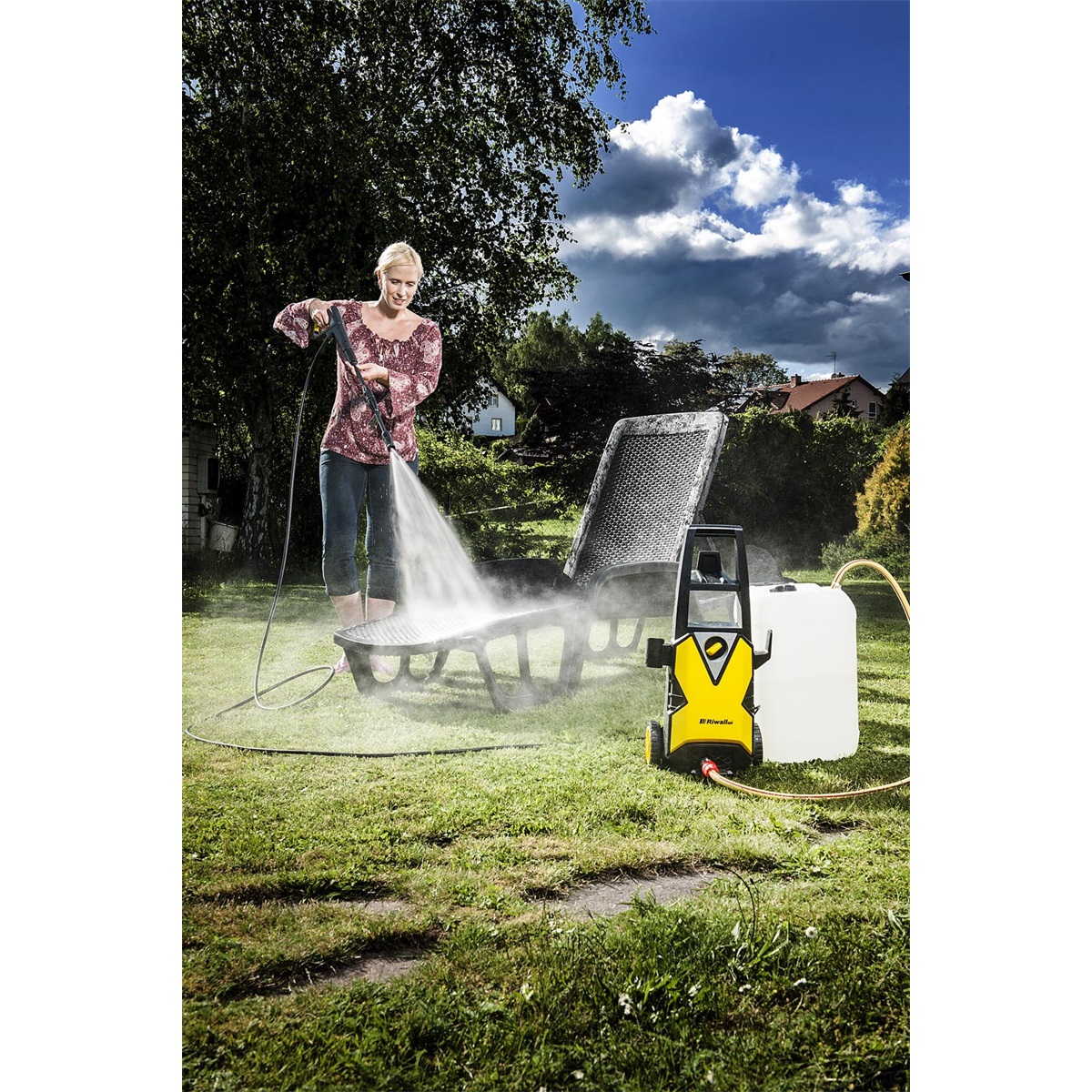 - Мойка высокого давления Riwall REPW120 - отлично подходит для мытья: автомобилей, брусчатки, фасадов, террас, садового инвентаря, велосипедов и мотоциклов.