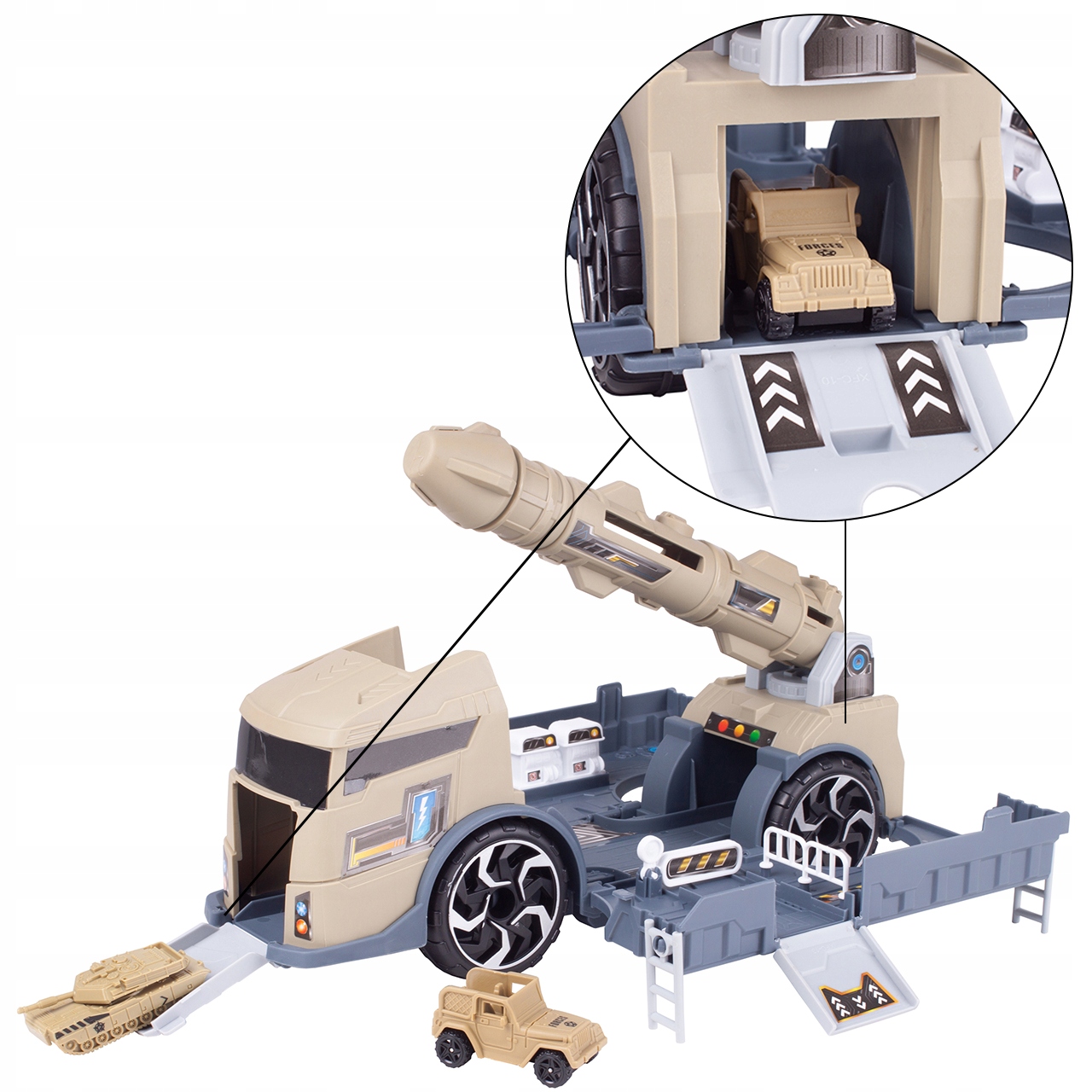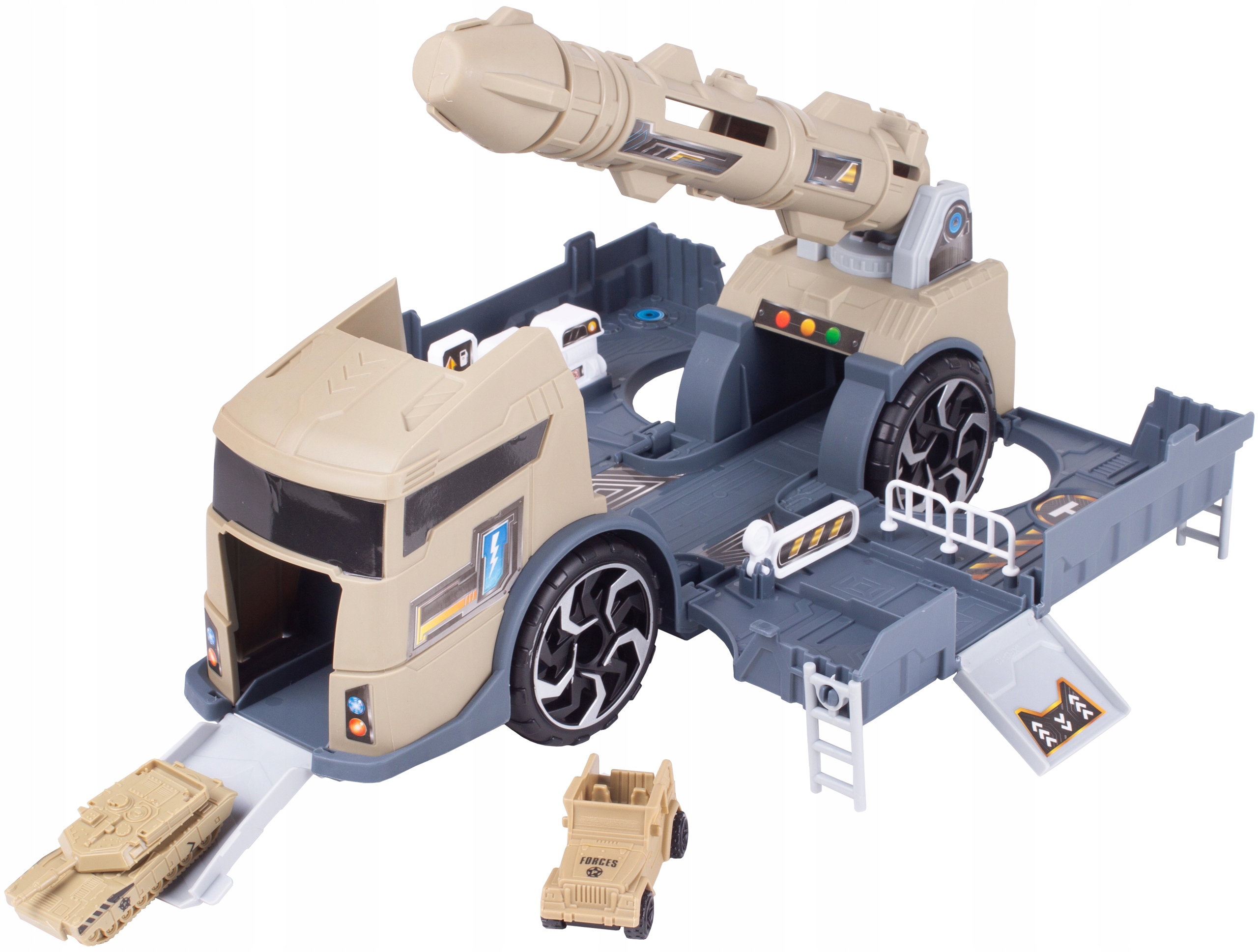 Супермногофункциональный грузовик с ракетницей, станет отличным подарком всем маленьким любителям автомобилей.