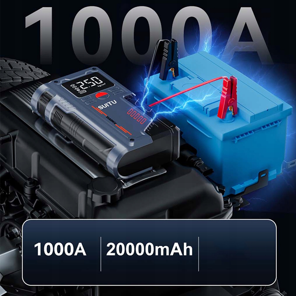 ⚡Функция запуска: Используя высокий ток 1000 А, он может немедленно запустить транспортные средства с большим объемом двигателя. Подходит для транспортных средств с напряжением 12 В.