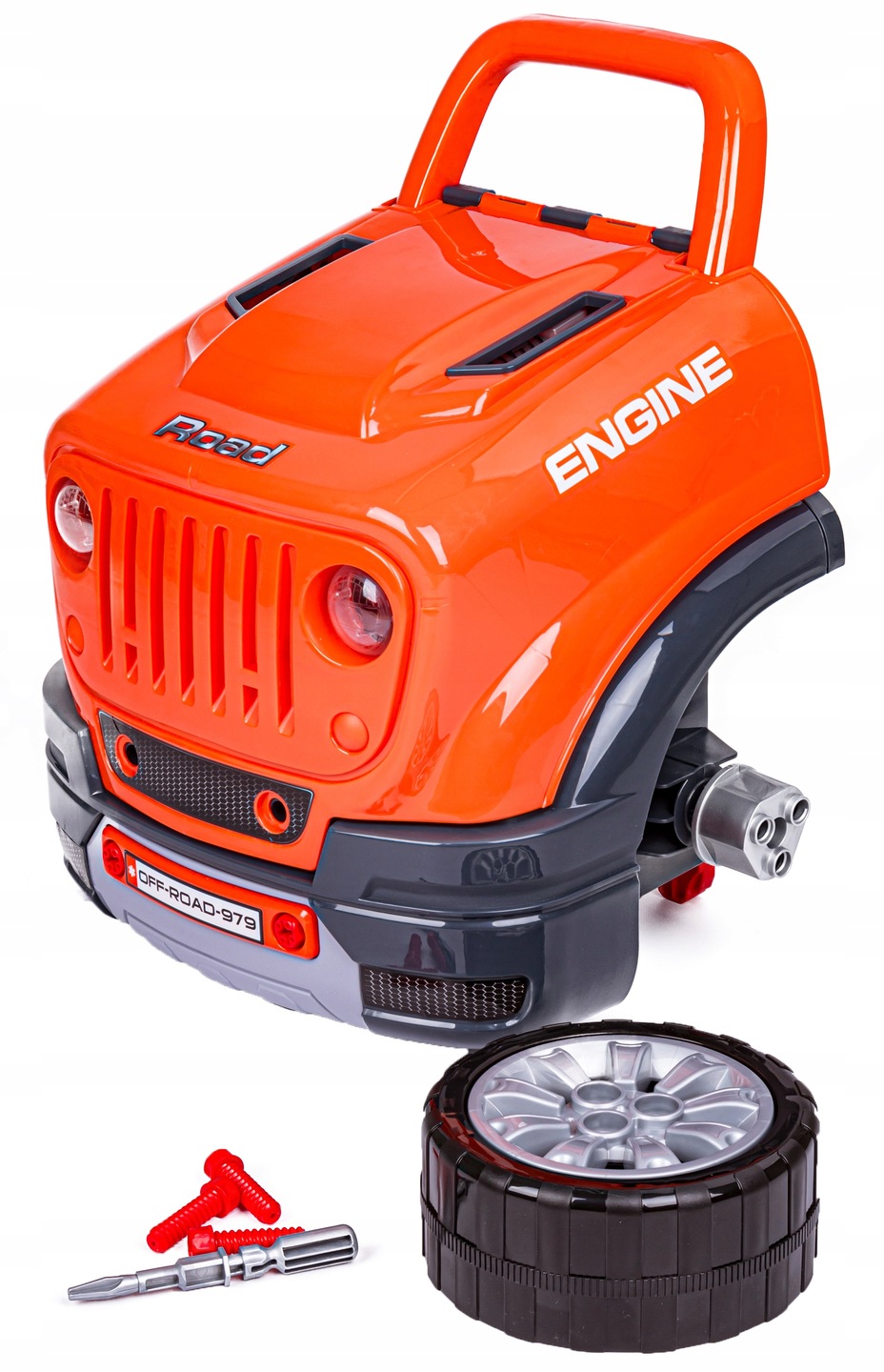 Внедорожник в разобранном виде – идеальная игрушка для маленьких любителей DIY. В комплект входит множество деталей, в том числе: колеса, диски, детали двигателя, винты. Ребенок может свободно их крутить и откручивать, чтобы двигатель автомобиля работал исправно.