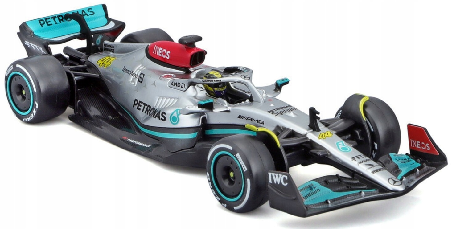 Автомобиль MERCEDES AMG F1 W13 E Performance Formula (модель Bburago, кат. номер: 38066), стартовый номер 44 - Льюис Хэмилтон, сезон 2022 г.