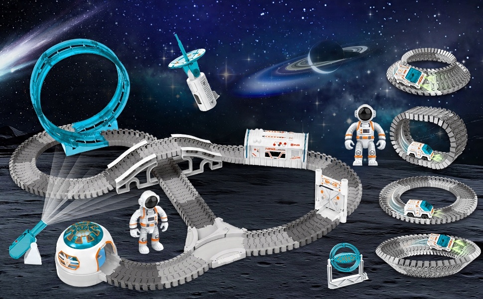 - ❤️Космическая дорожка изготовлена из экологически чистого высококачественного пластика, соответствующего стандартам безопасности ASTM. , и поэтому он достаточно прочный. Входящий в комплект гоночный автомобиль загорается, и всем детям это нравится.