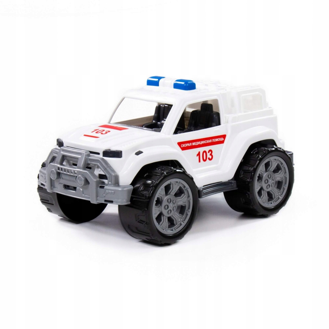 Автомобиль имеет массивную внедорожную конструкцию, большие колеса выделяются издалека и создают впечатление мощи автомобиля. Сбоку есть красные наклейки с надписью «Скорая помощь», которые добавляют характера. Внутри кабина водителя и задняя часть автомобиля выполнены с мельчайшими деталями, напоминающими реалистичный аналог. Игрушка станет отличным гаджетом для каждого маленького автолюбителя, а также для фельдшера: она расширит его коллекцию транспортных средств, доставив ему массу удовольствия.