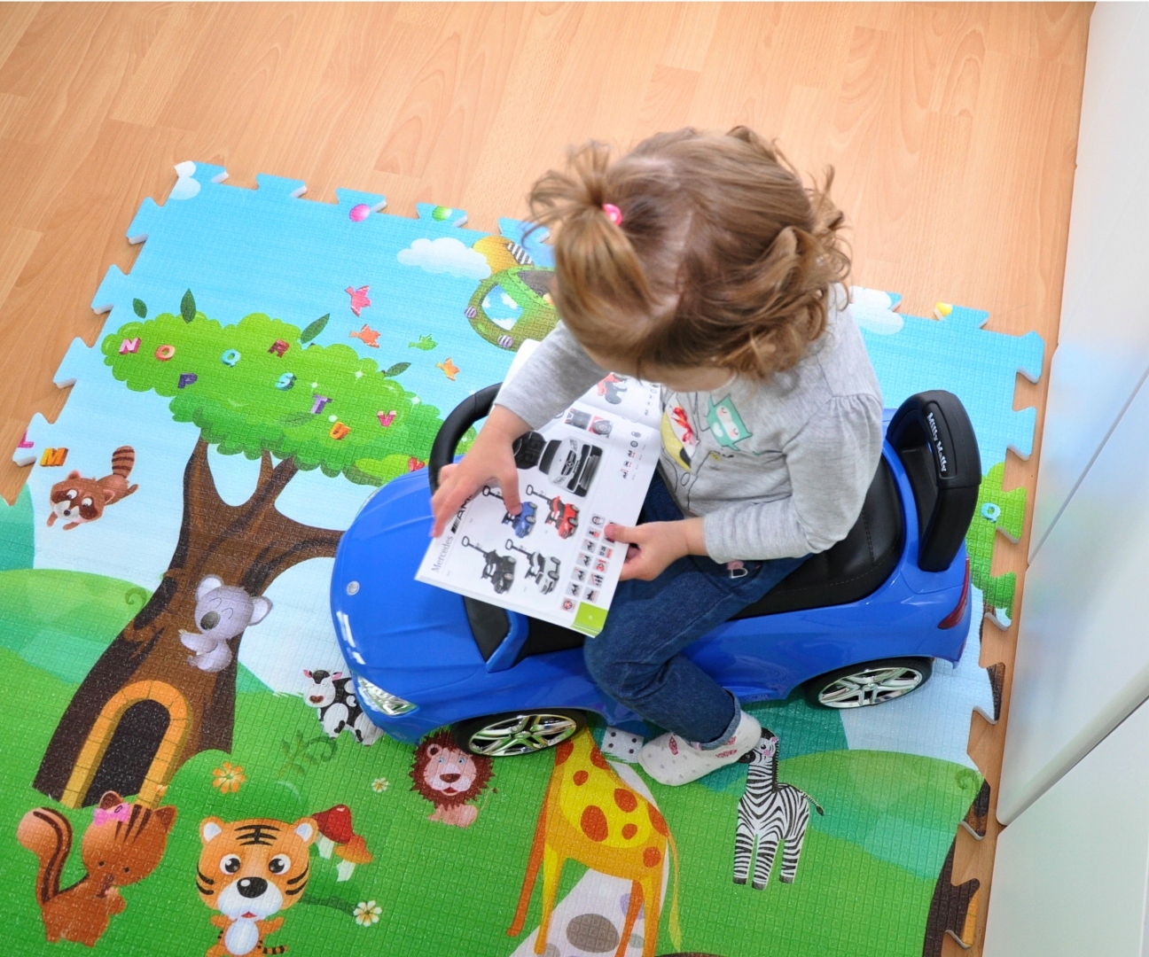 - трехспицевый руль с логотипом Mercedes, оснащенный звуковым сигналом и веселыми мелодиями