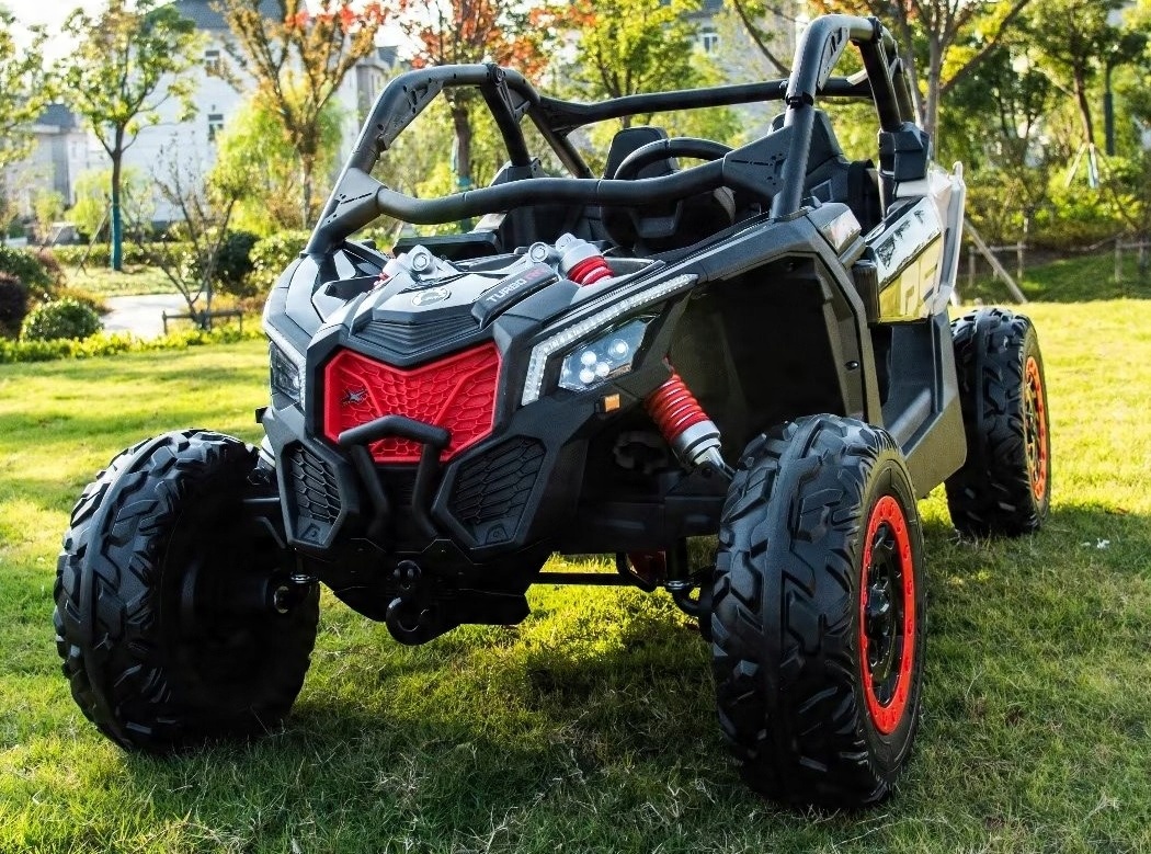 Аккумуляторная машина для детей CAN AM MAVERIC TURBO RR приводится в движение четырьмя мощными двигателями напряжением 24 В каждый мощностью 200 Вт с питанием от двух аккумуляторов. с аккумулятором общей мощностью 24В 14Ач.