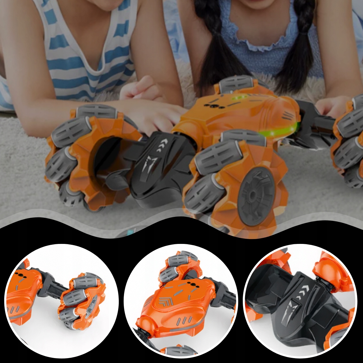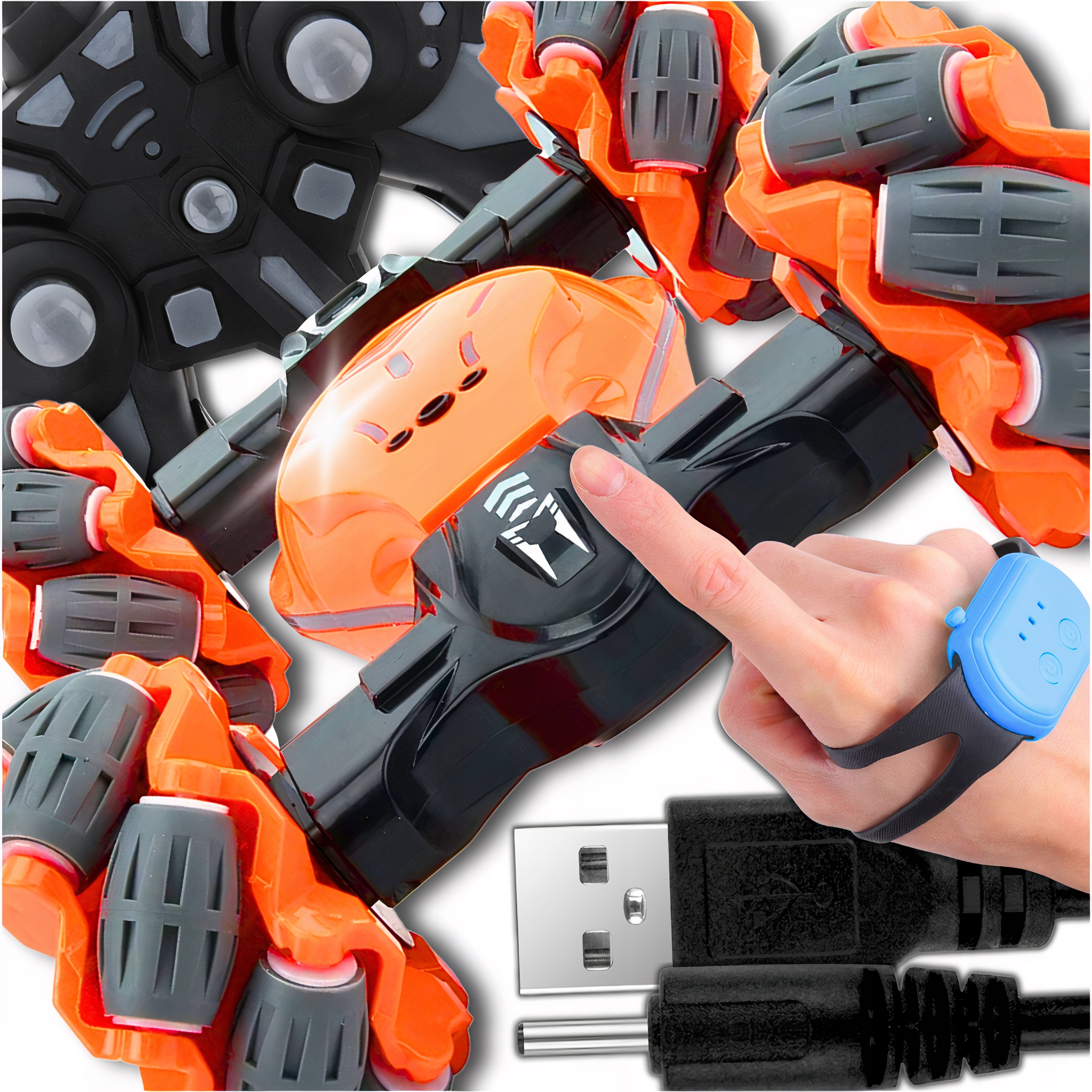 ✅Инновационное управление: предлагает два варианта управления — традиционное дистанционное управление и гравитационный контроллер на запястье. Управление жестами запястья является современным и интуитивно понятным, что позволяет управлять движением автомобиля с помощью движений запястья.