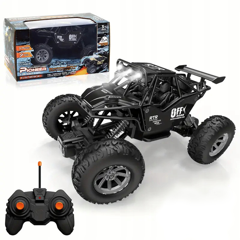 Большим преимуществом автомобиля является специальная независимая подвеска и высокое шасси, позволяющее ему легче преодолевать любые препятствия на своем пути. Веселья добавляют впечатляющие светящиеся фары на крыше автомобиля, благодаря которым можно играть на улице в темное время суток.