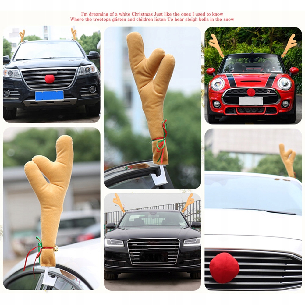 Автомобильный комплект с рогами и носом оленя для окна автомобиля, крыши и передней решетки, Рождественский автомобильный костюм с изображением оленя, автомобильные аксессуары