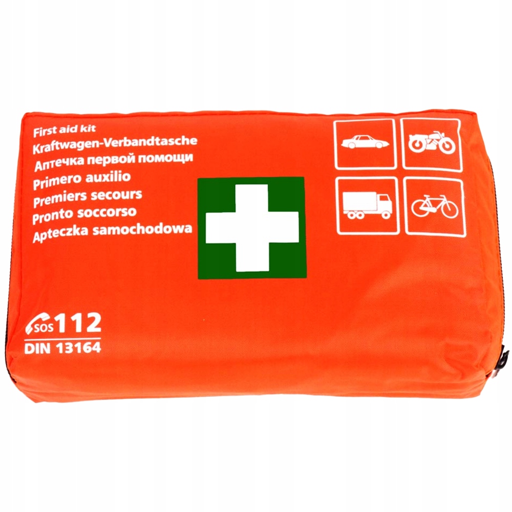 Автомобильная аптечка является обязательным оборудованием автомобиля во многих странах Евросоюза. Изделие оснащено в соответствии со стандартом DIN 13164, который включает в себя высококачественные элементы, обеспечивающие эффективную первую помощь. Аптечка предназначена в первую очередь для автомобильной промышленности. Его чехол изготовлен из водонепроницаемого материала и имеет застежку-липучку сзади, что позволяет устанавливать его в любом месте.