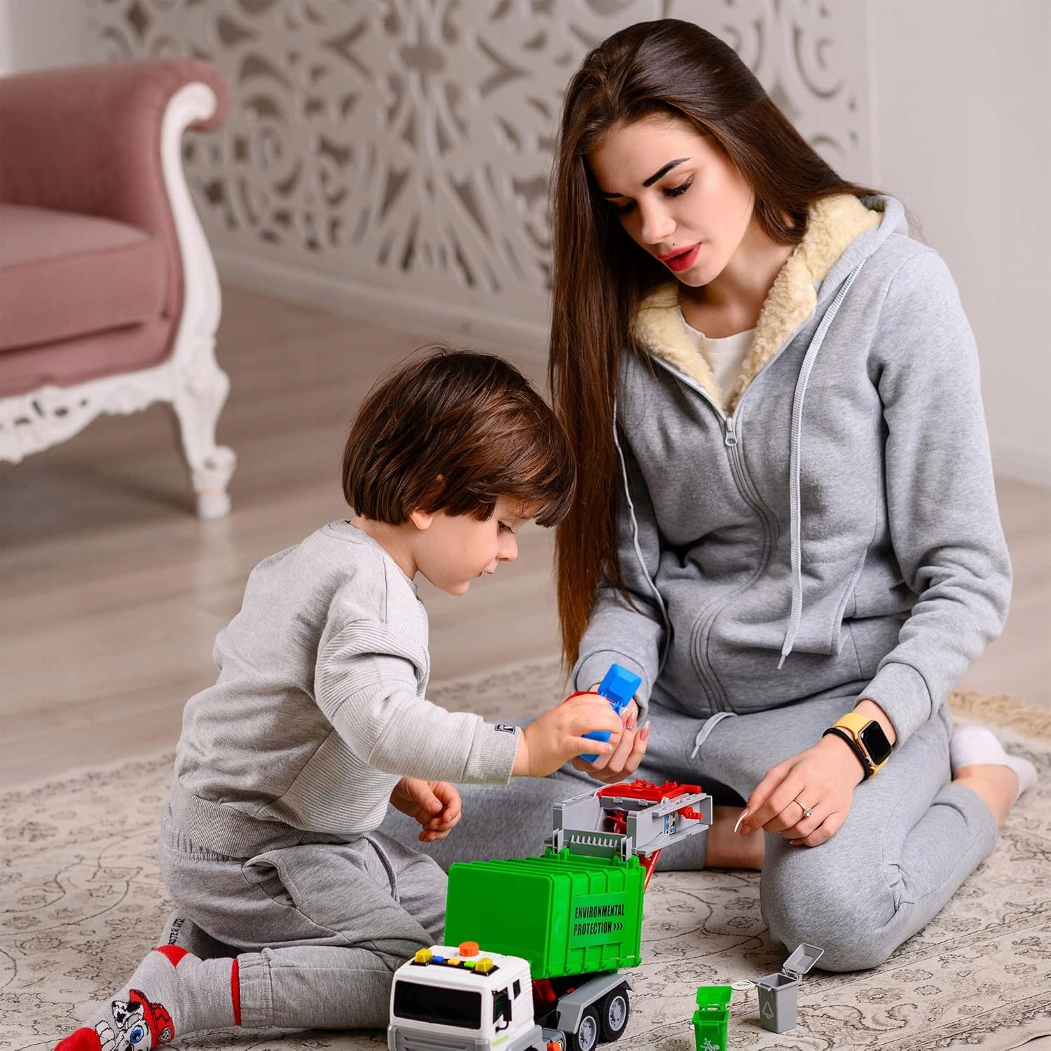 Этот игрушечный грузовик работает как настоящий мусорный грузовик. На обратной части вы можете повесить мусорное ведро, а качание можно использовать для бросания «мусора». Колеса питаются шипами. Дети могут переместить грузовик в другое место, а затем выбрасывать «мусор», поднимая заднюю часть грузовика. Реалистичные звуки и огни обеспечивают больше удовольствия от детей