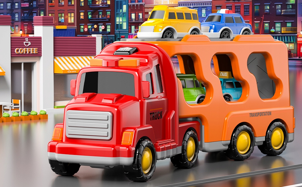 ⭐️Игрушечный грузовик для малышей поставляется с реалистичными свистками и мигающими огнями. Просто нажмите кнопку на верхней части кабины.