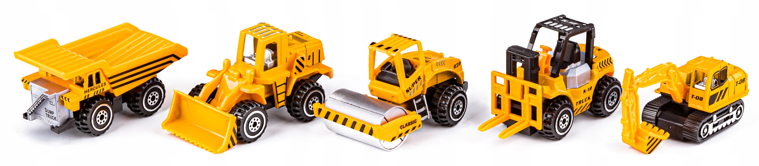 Строительная техника изготовлена из металла, имеет пластиковые движущиеся части и колеса. Еще одним преимуществом набора является реалистичный дизайн, вдохновленный реальными машинами.