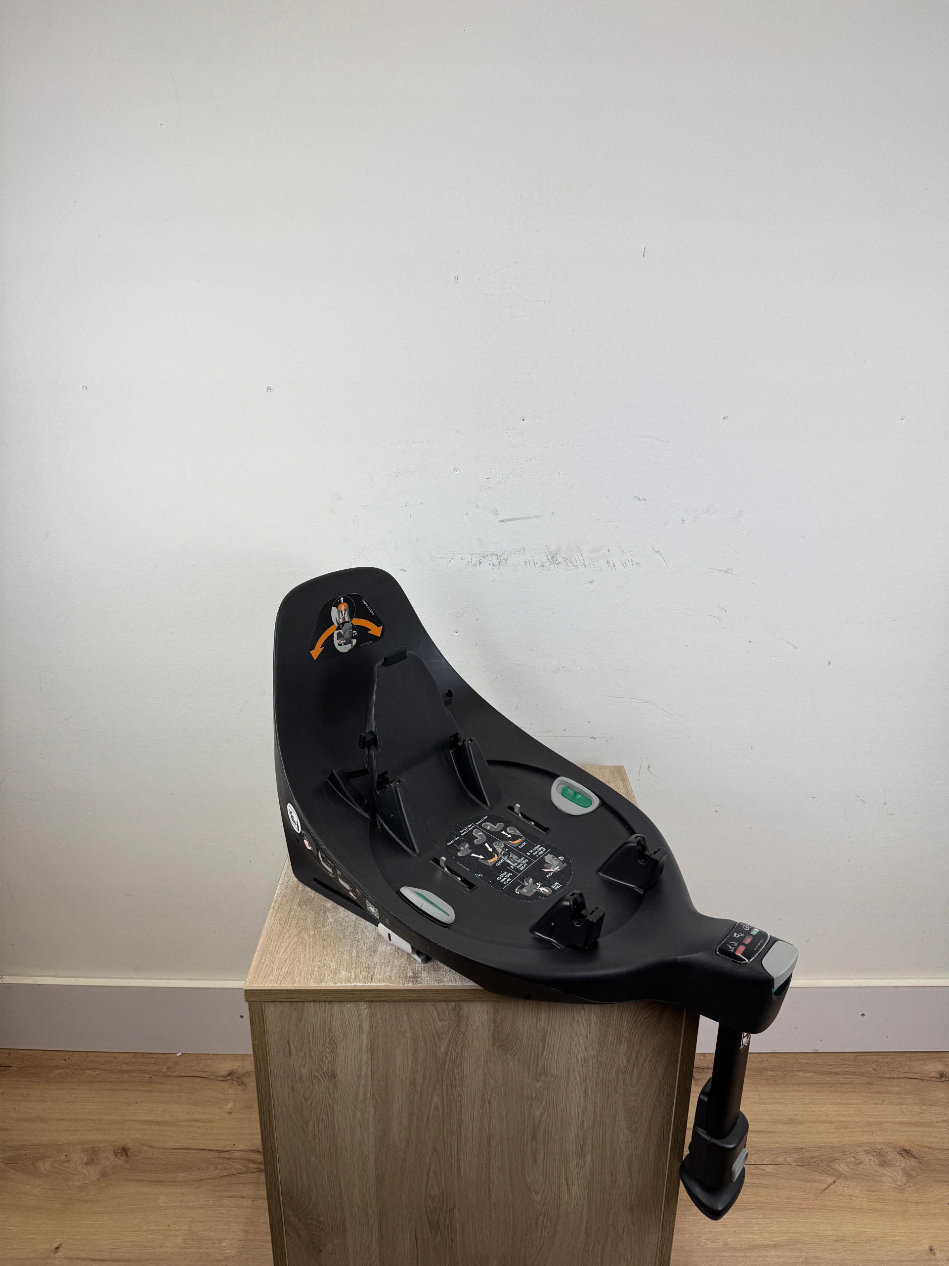 Основа крепится в автомобиле с помощью системы Isofix и стабилизирующей ножки. Он предлагает удобную в использовании систему поворота: