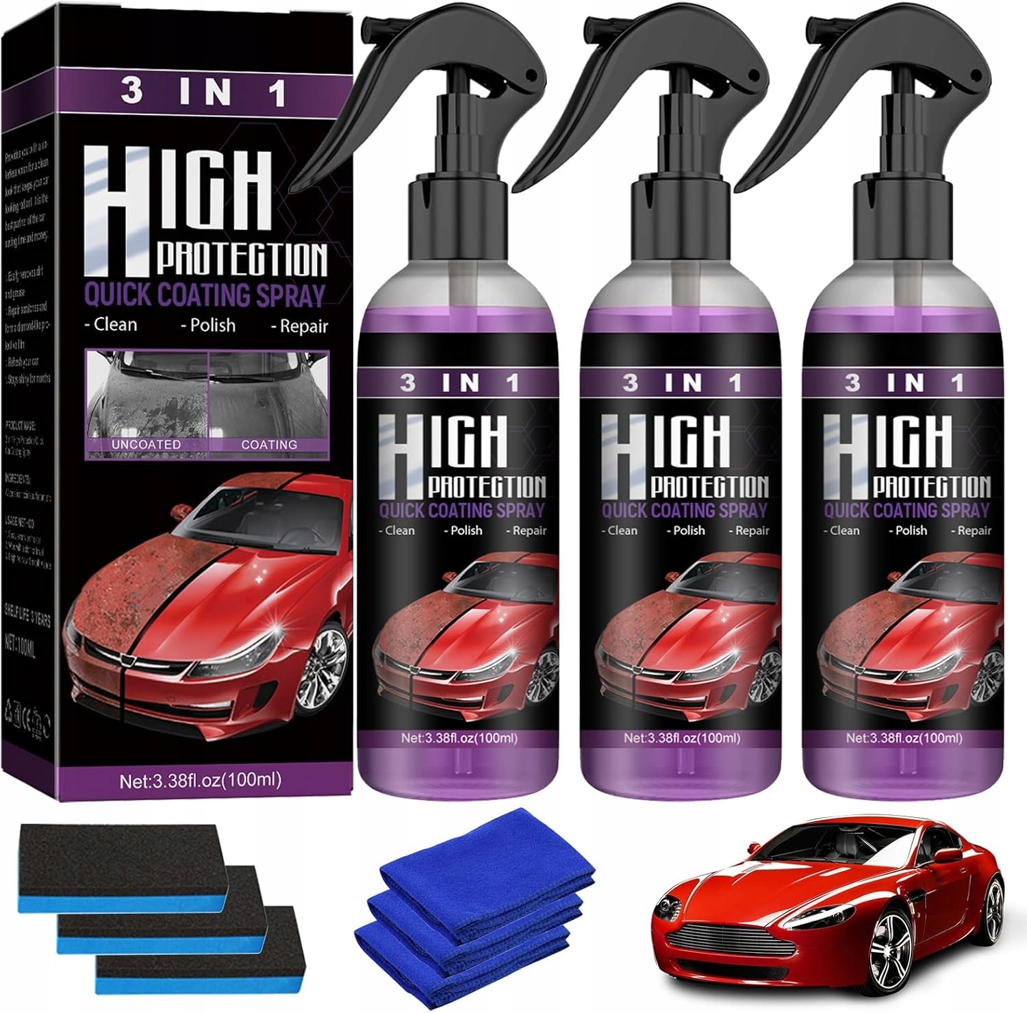 💦3 в 1 Быстродействующая гидрофобная автомобильная краска с высокой степенью защиты спрей для керамического покрытия, 100 мл (бесплатная губка и полотенце)💦