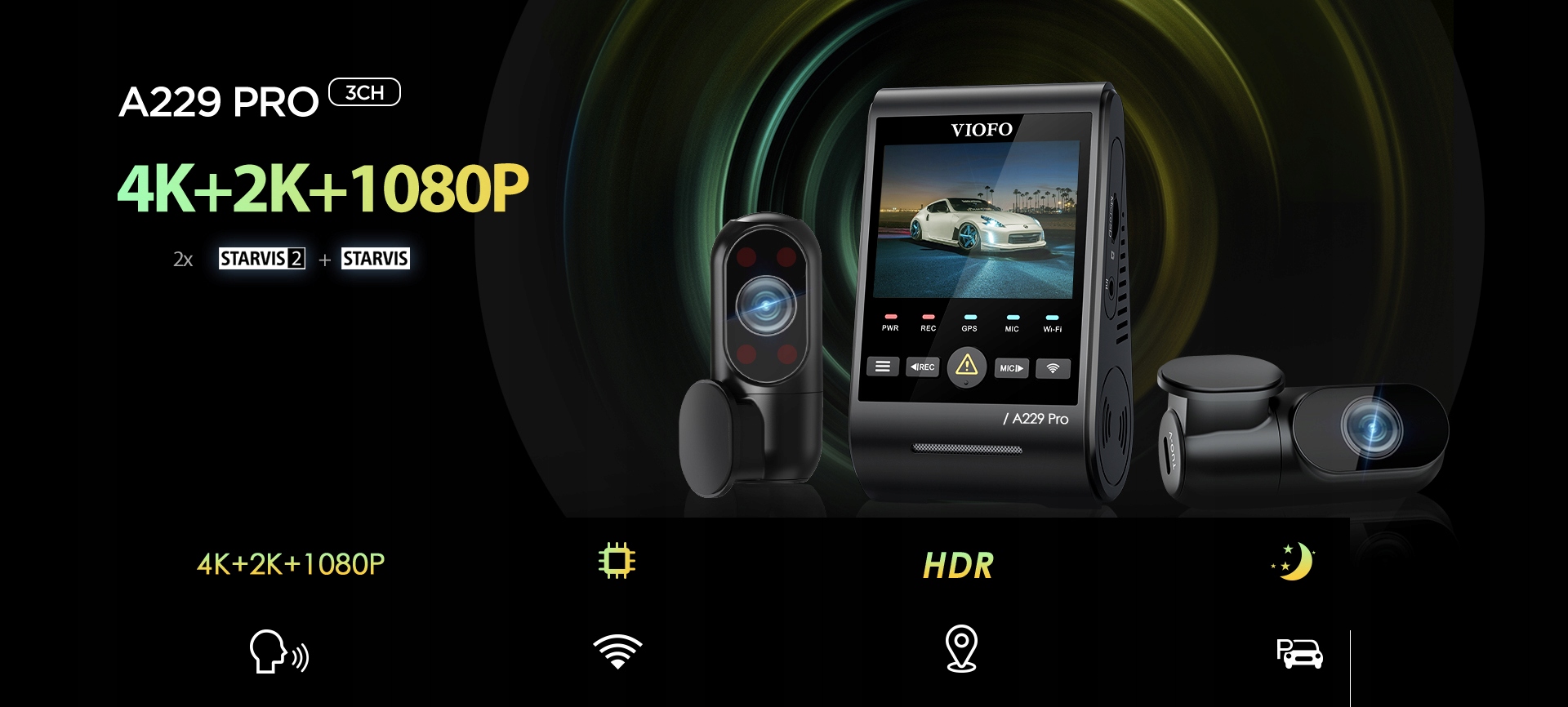 VIOFO Камера A229 PRO 3CH-G — комплексное решение для всех водителей, которые заботятся о собственной безопасности на дороге и хотят запечатлеть важные моменты во время путешествия. Благодаря передовым технологиям и качественным комплектующим он является незаменимым спутником в каждой поездке.