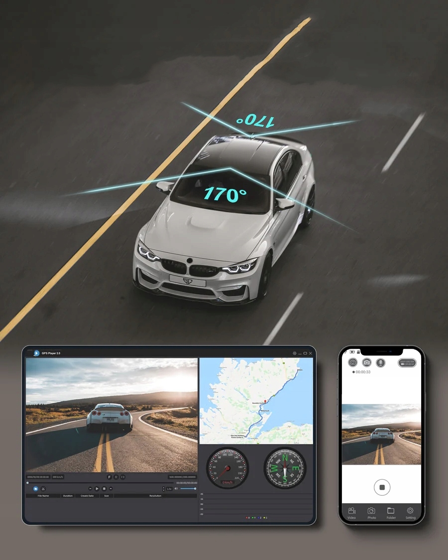 Передняя автомобильная камера 4K, задняя камера 1080P. Видео с разрешением до золотого стандарта и видео с автомобильной камеры платинового качества. Точное разрешение видео фиксирует каждую деталь, которую вы не сможете упустить, записывая каждое путешествие с кристально четким подключением.