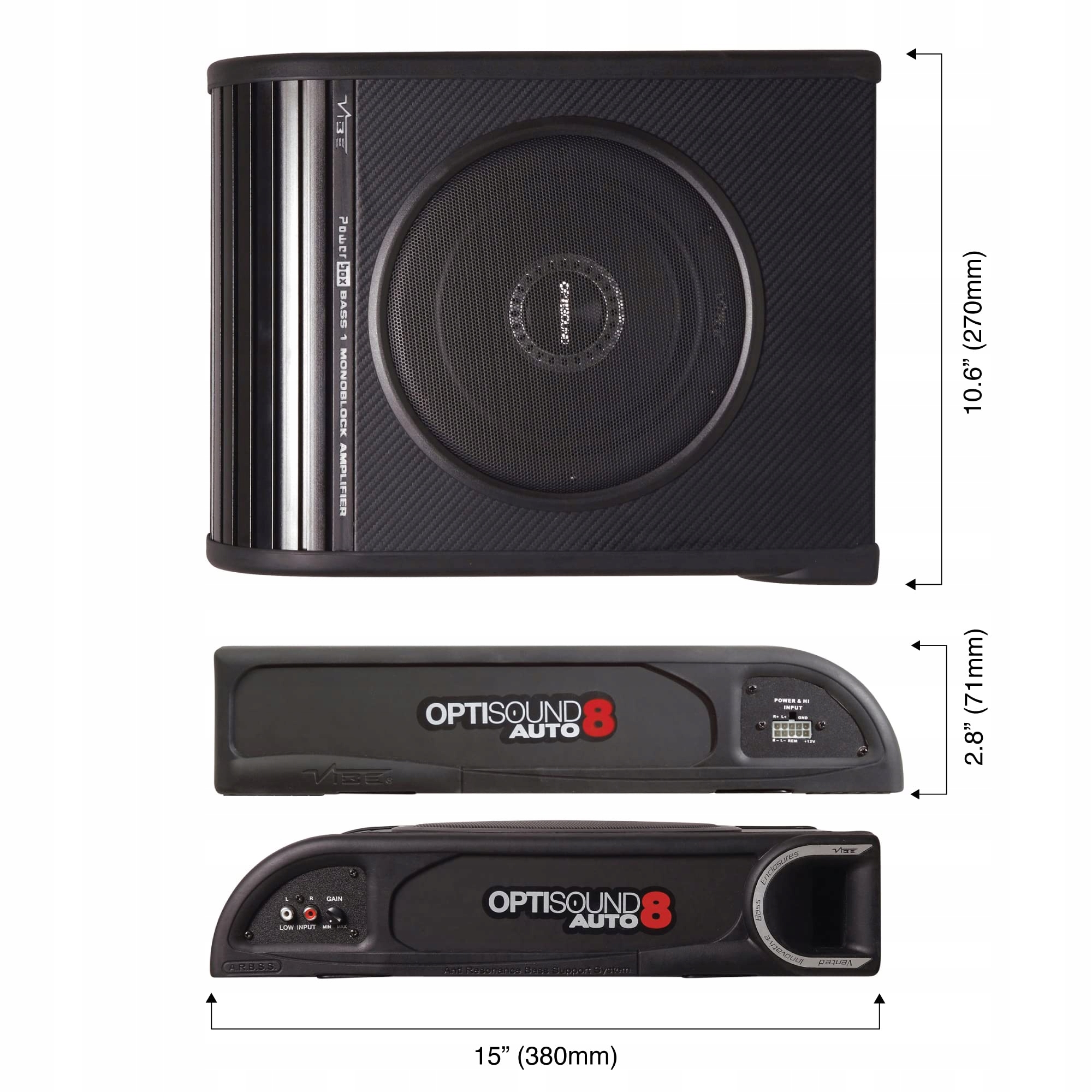 - предмет название: VIBE Audio Optisound Slimline 8-дюймовый нижний басовый корпус, OPTISOUNDAUTO8A-V2, черный