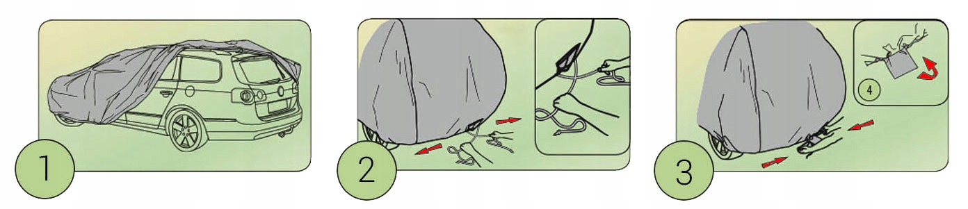 - Тарпаулин автомобилей прикреплен с определенным выкройкой с веревкой вокруг всего автомобиля, что гарантирует безопасность даже в случае сильных порывов ветра.